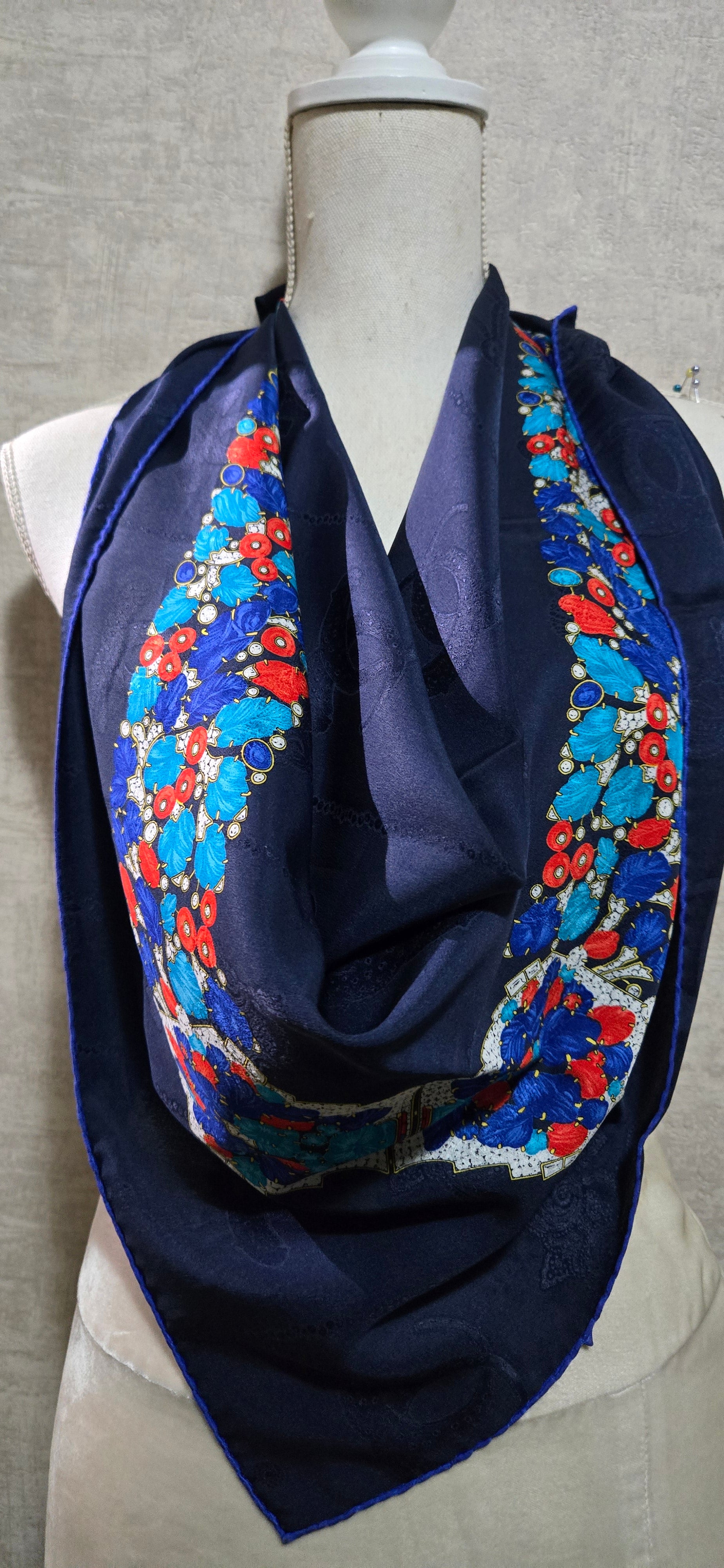 Carré Cartier, Must de Cartier en Soie "Tutti Frutti Belt" bleu 85x 85 cm dans sa Boîte.