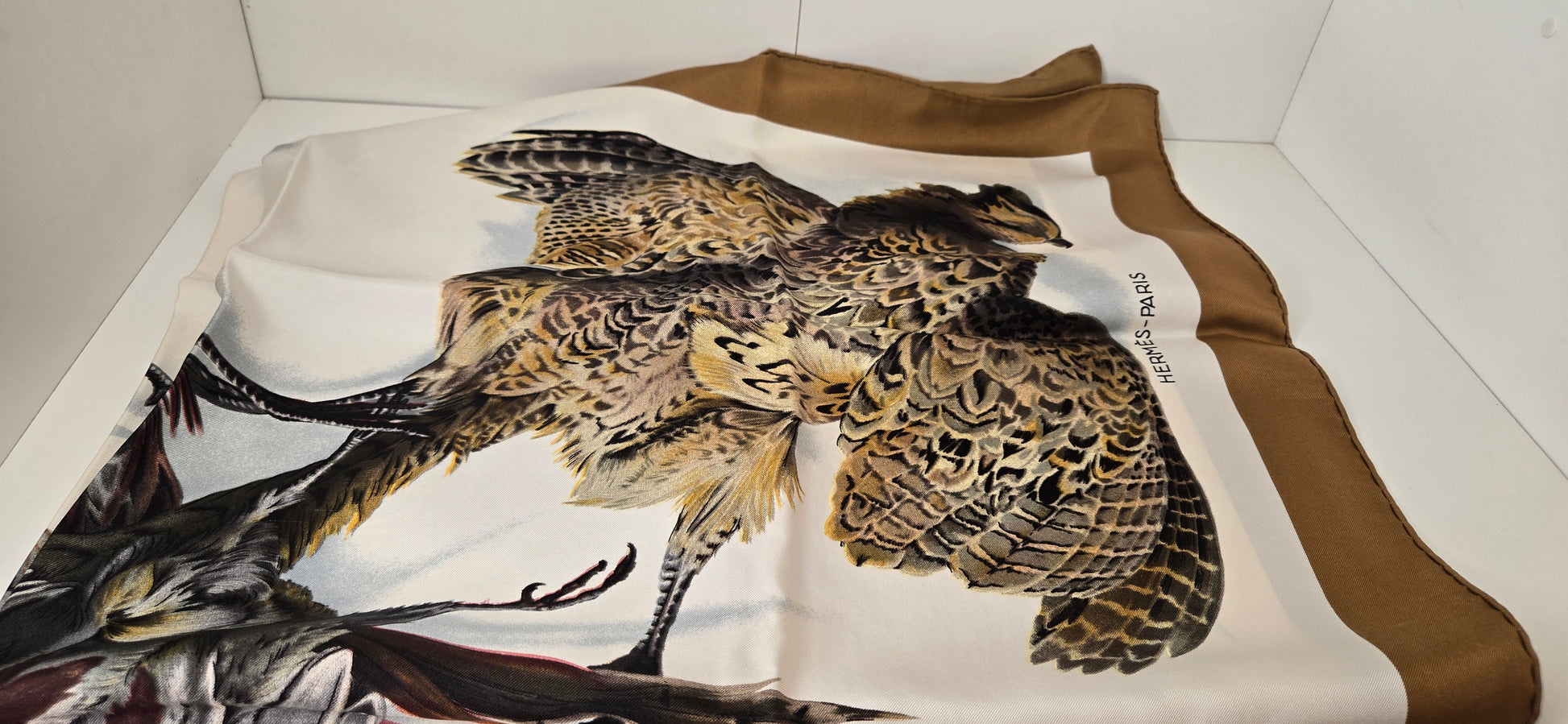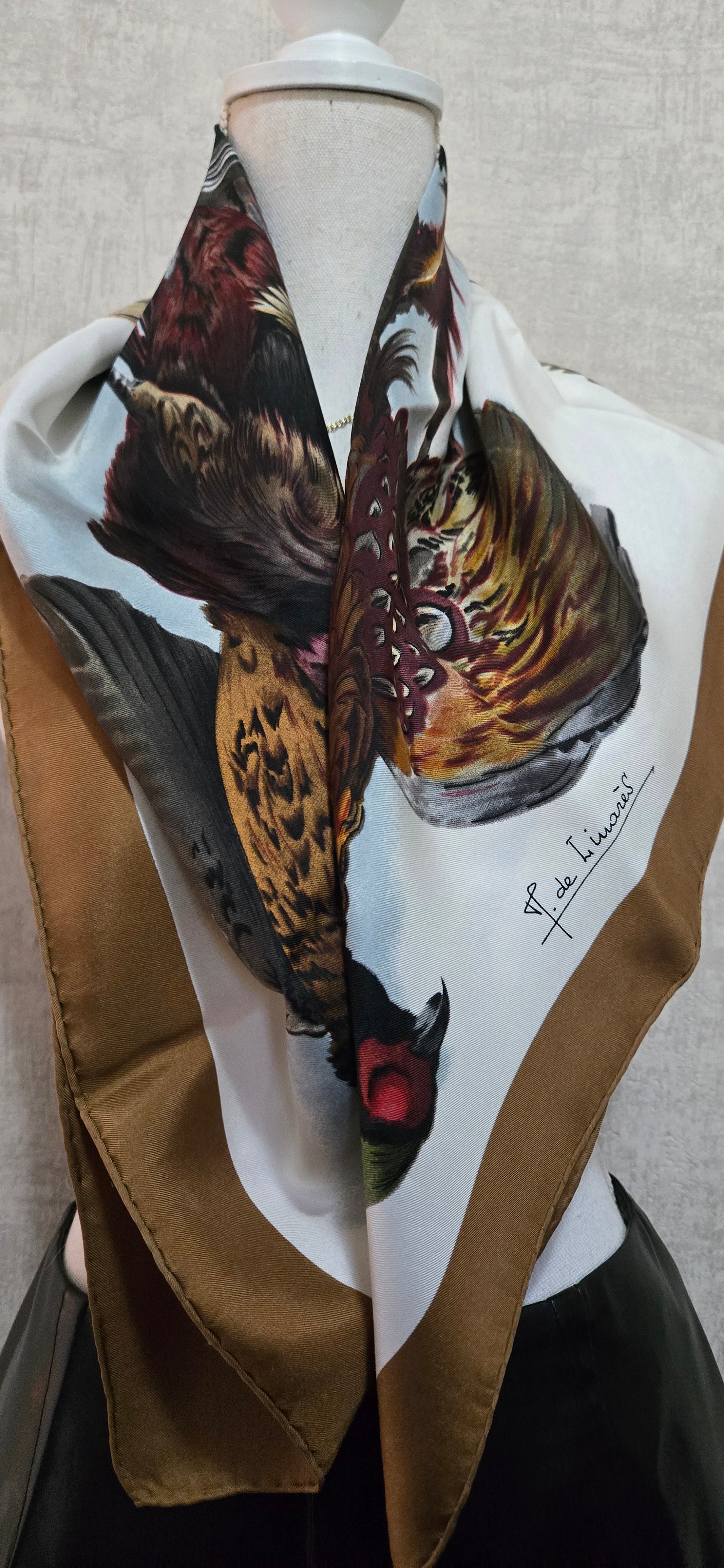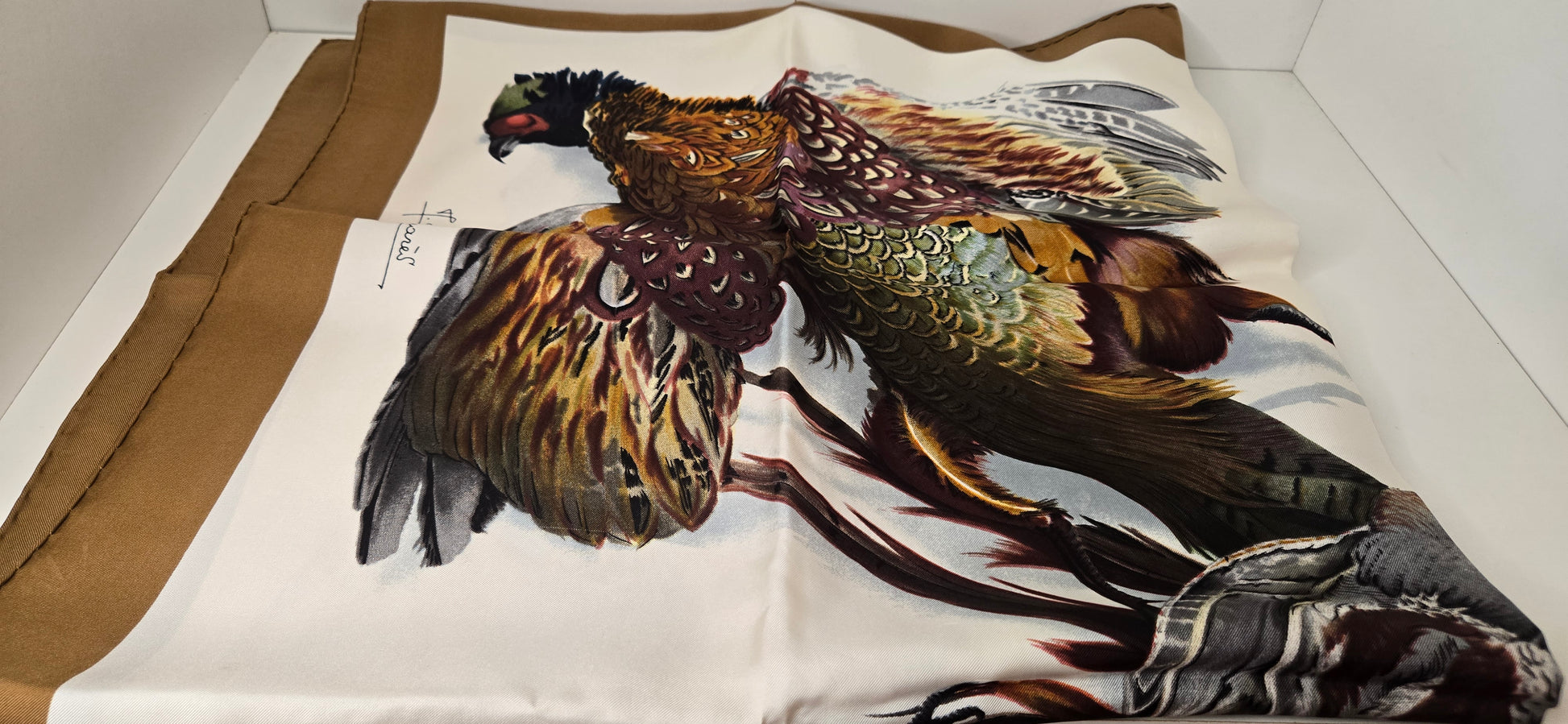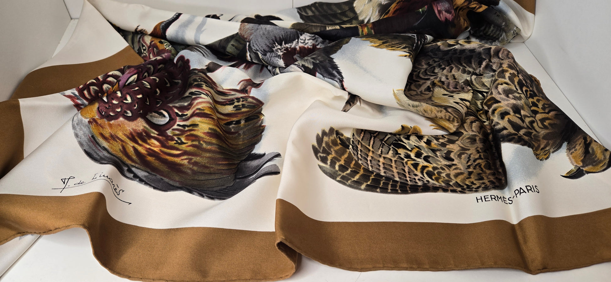 Carré Hermès en twill de soie, intitulé "Belle Chasse" dessine et signé Par Henri de Linares . En très Bon état.
