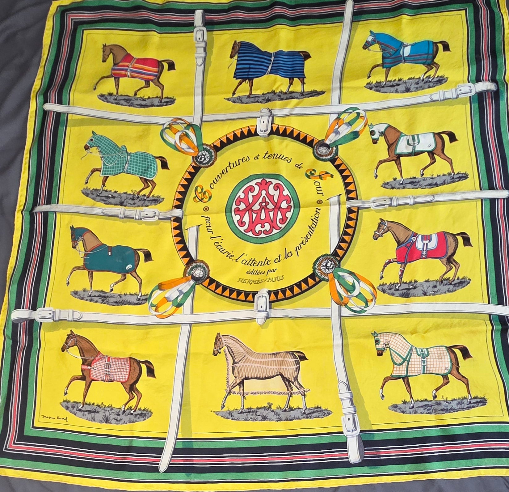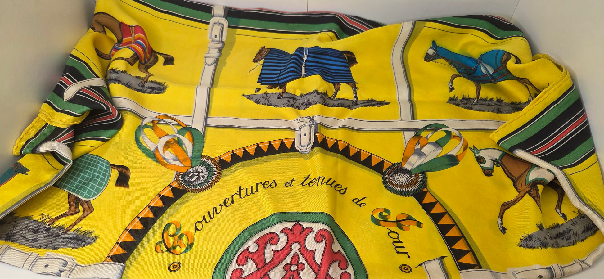 Carré Hermès en twill de soie "Couvertures et tenues de Jour"