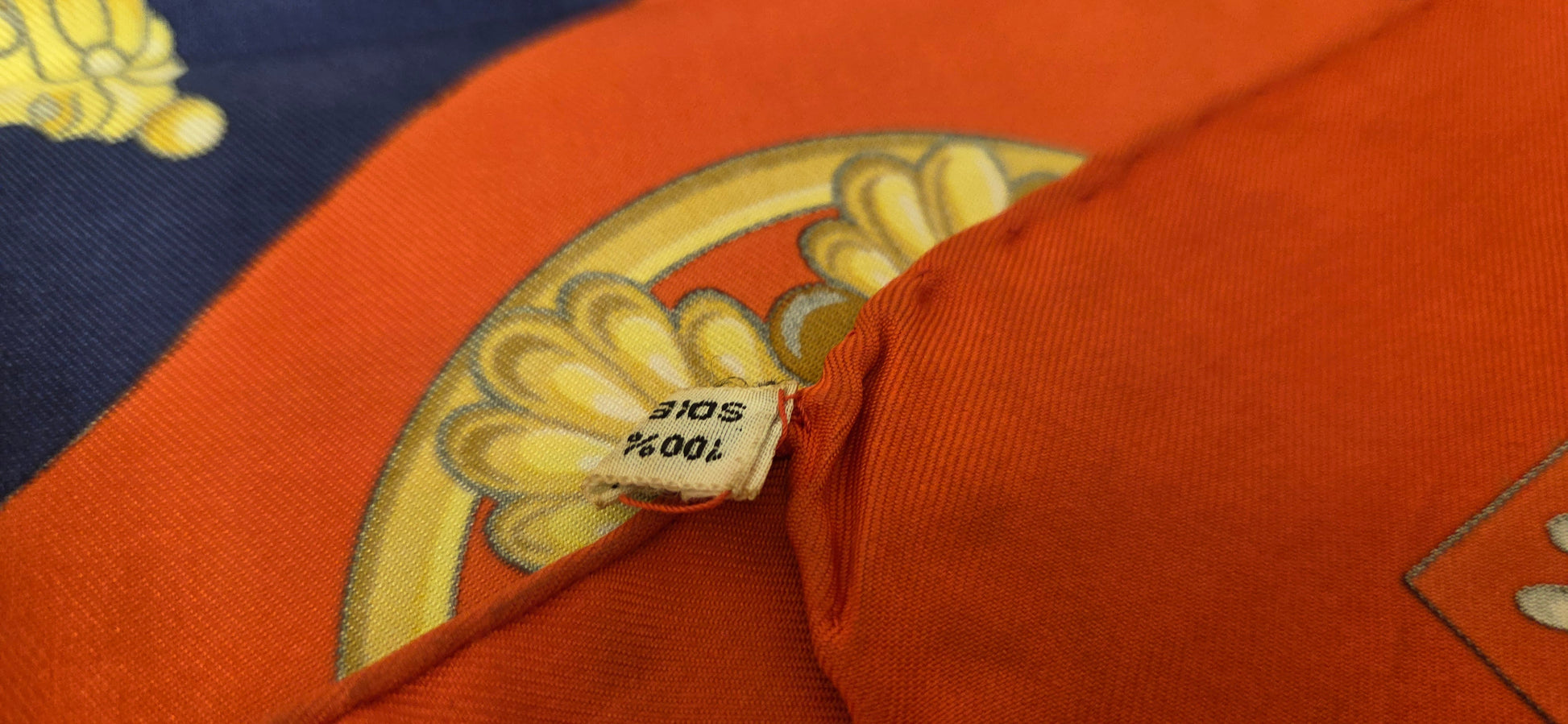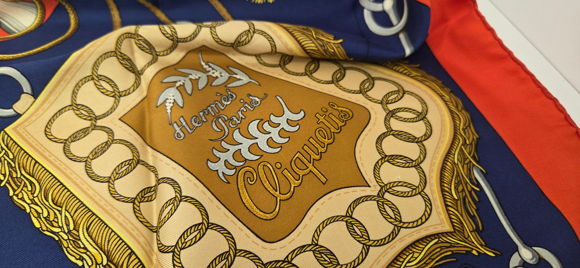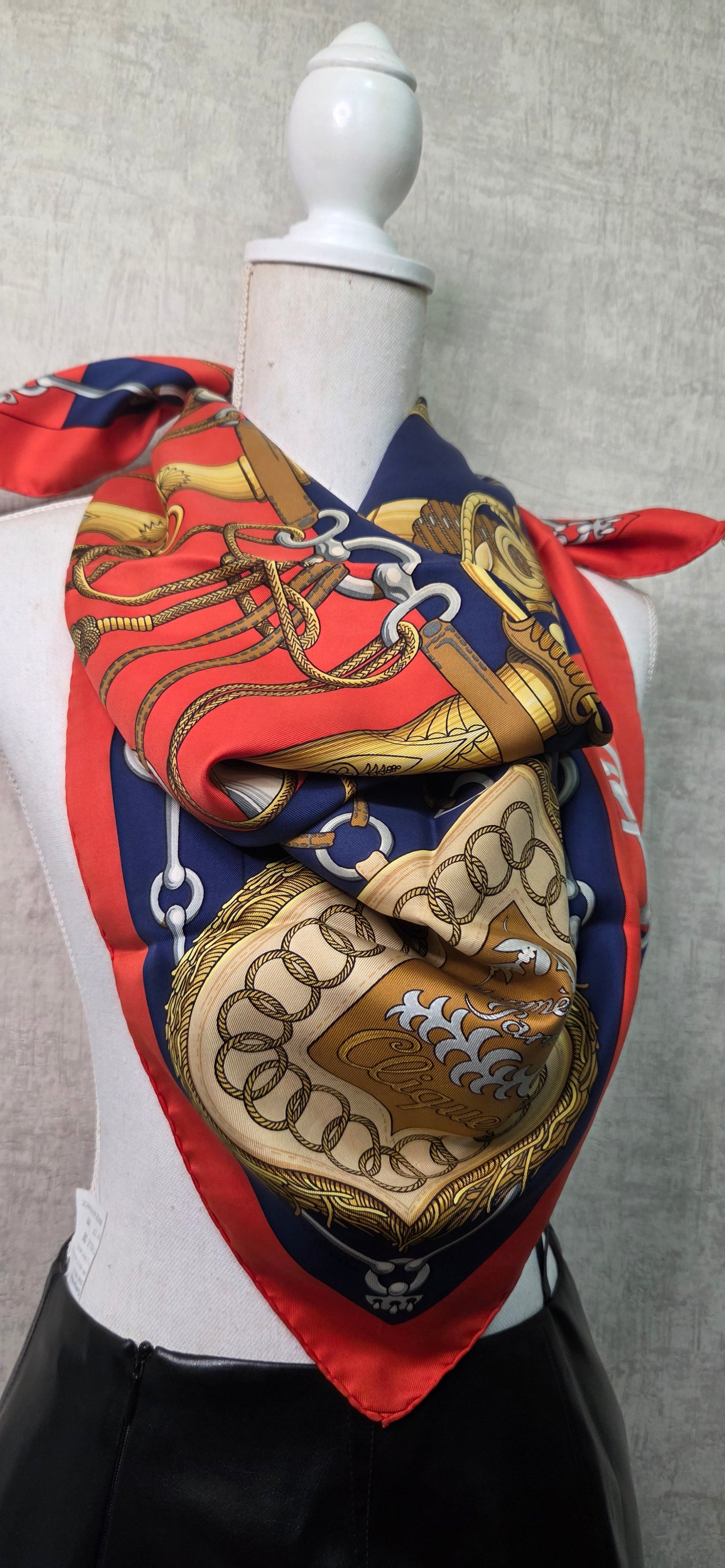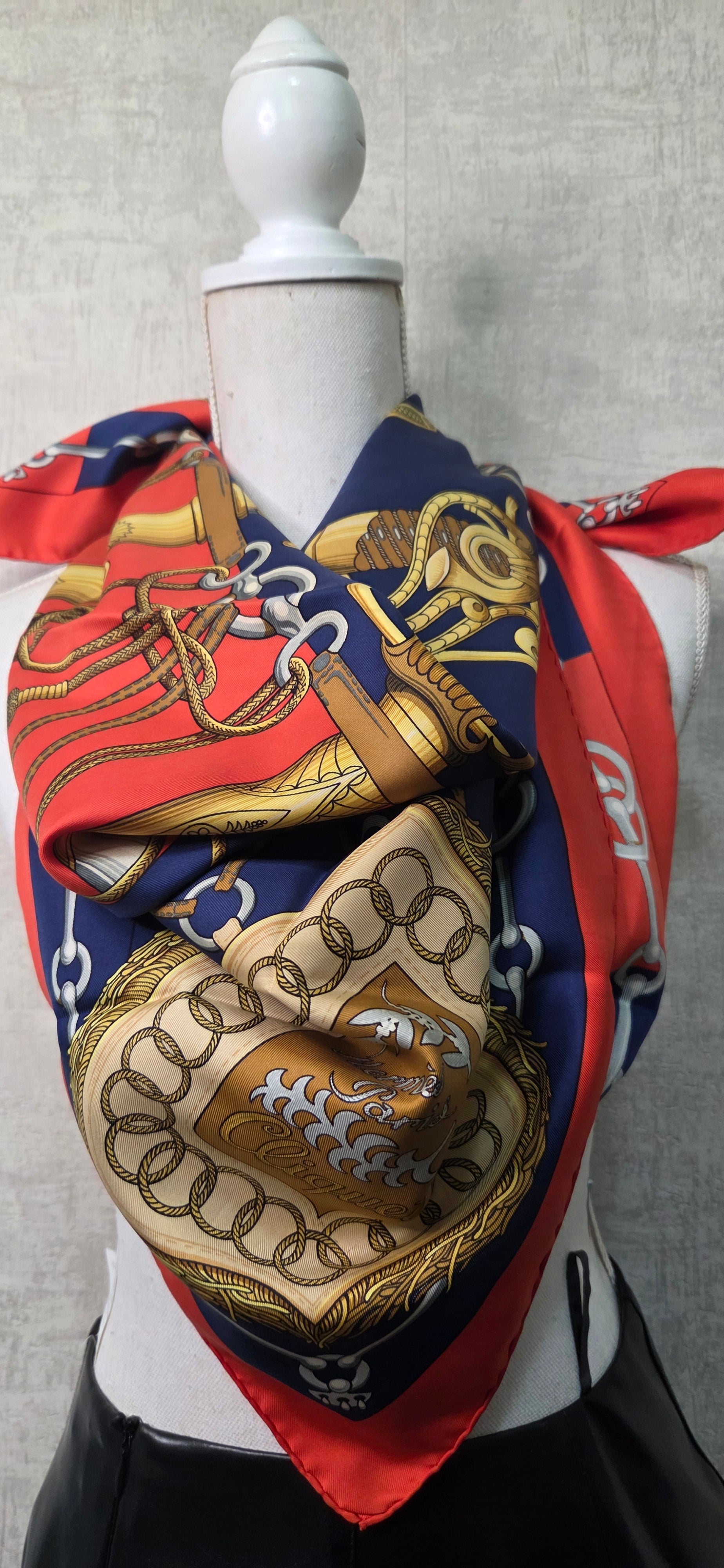 Dans les tons rouge et bleu à motifs de Couteaux de chasse. Signé Julie Abadie.