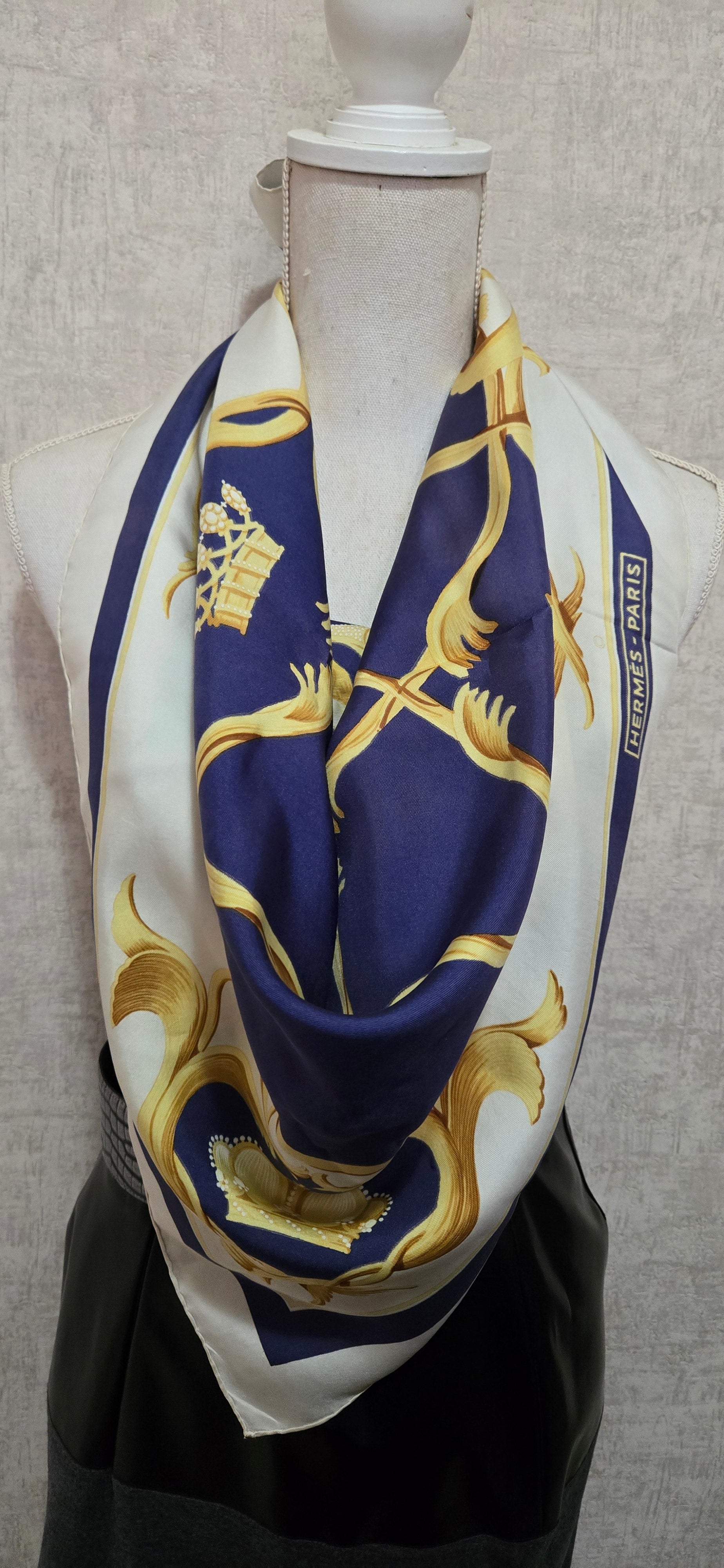 Carré Hermès en twill de soie intitulé "Couronne" or "Crown" par Julie Abadie