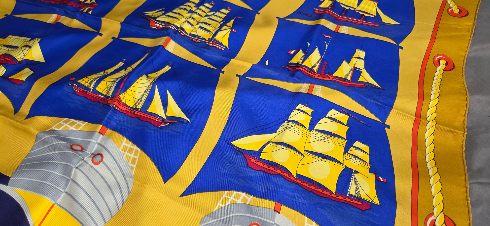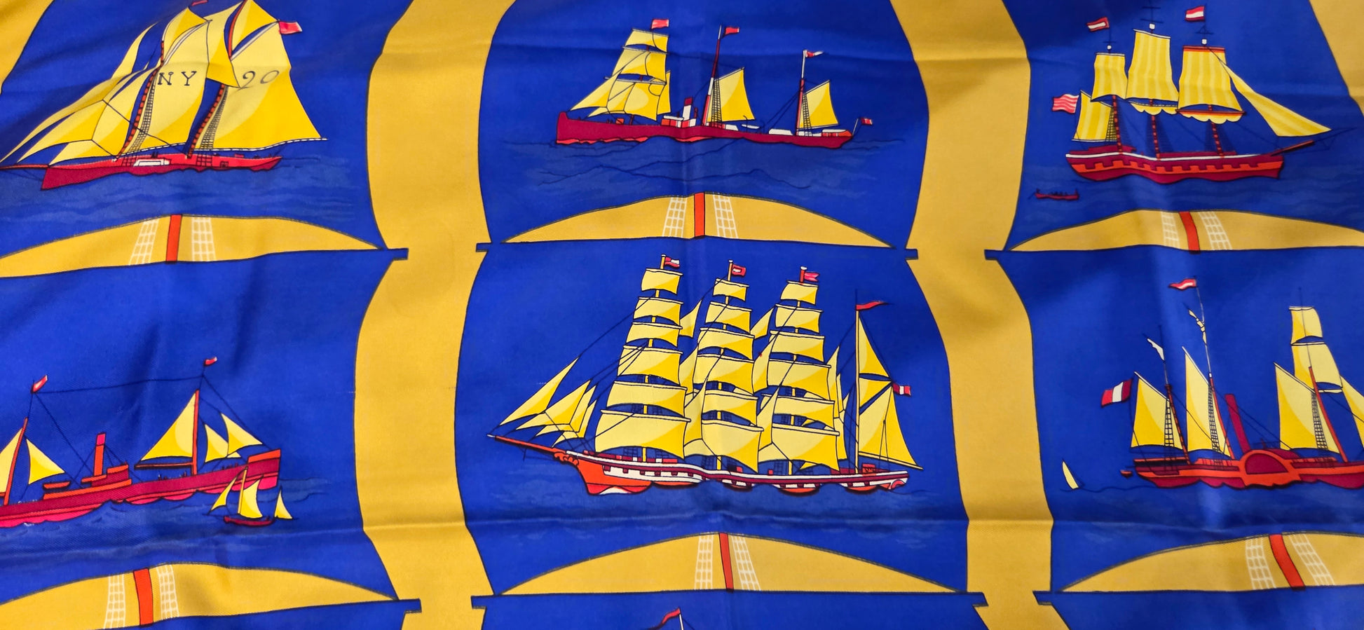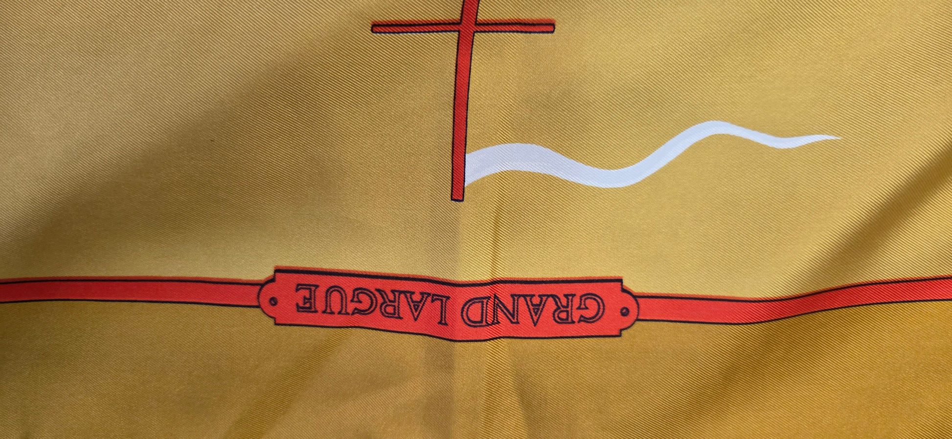 intitulé " Grand Largue" D'après un dessin de Pierre Péron 90 x 90 cm. Édité pour la première fois en 1980.