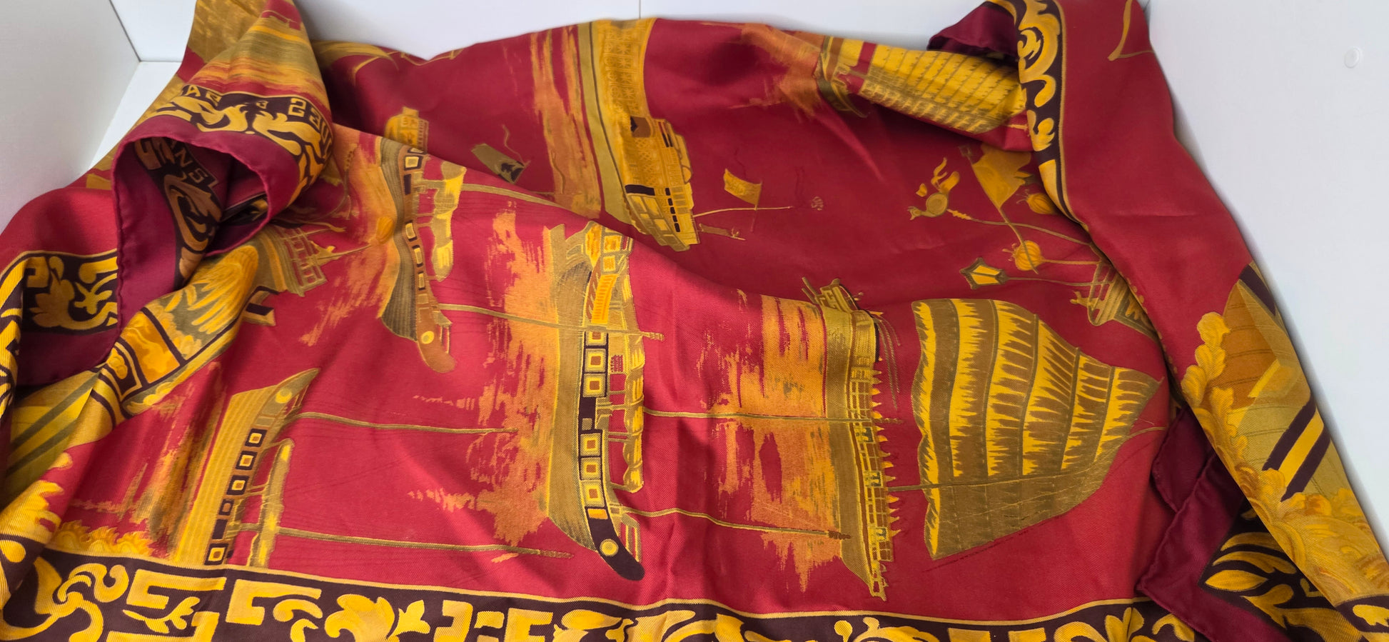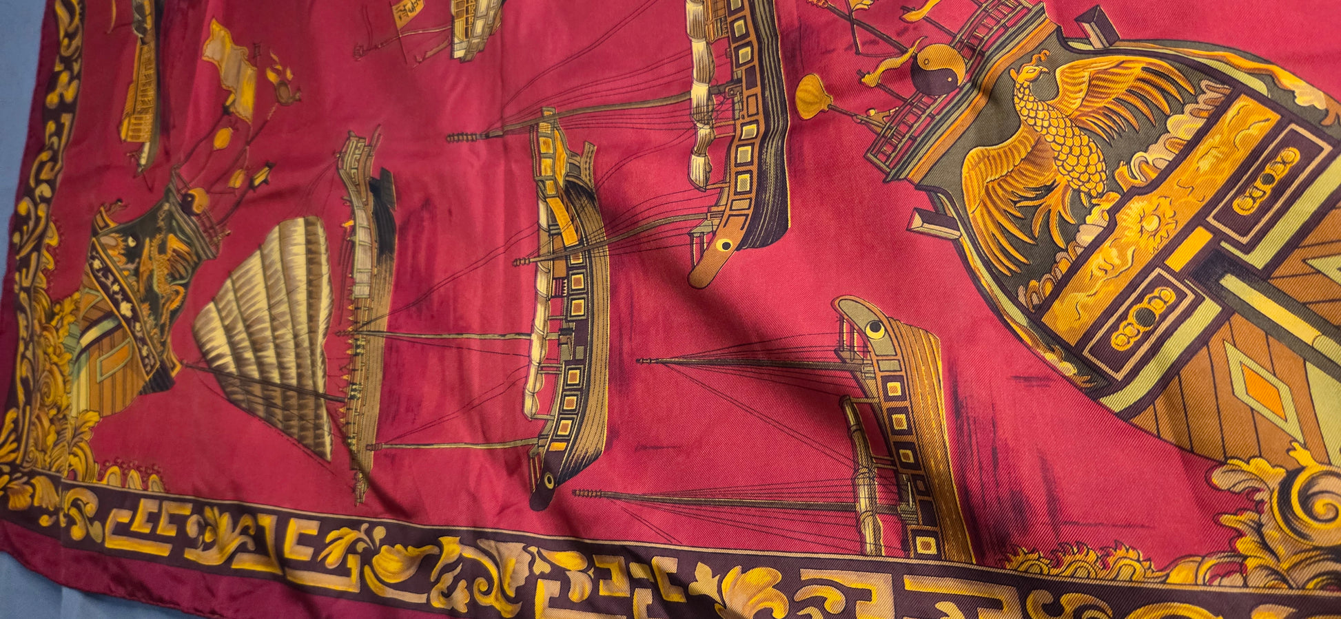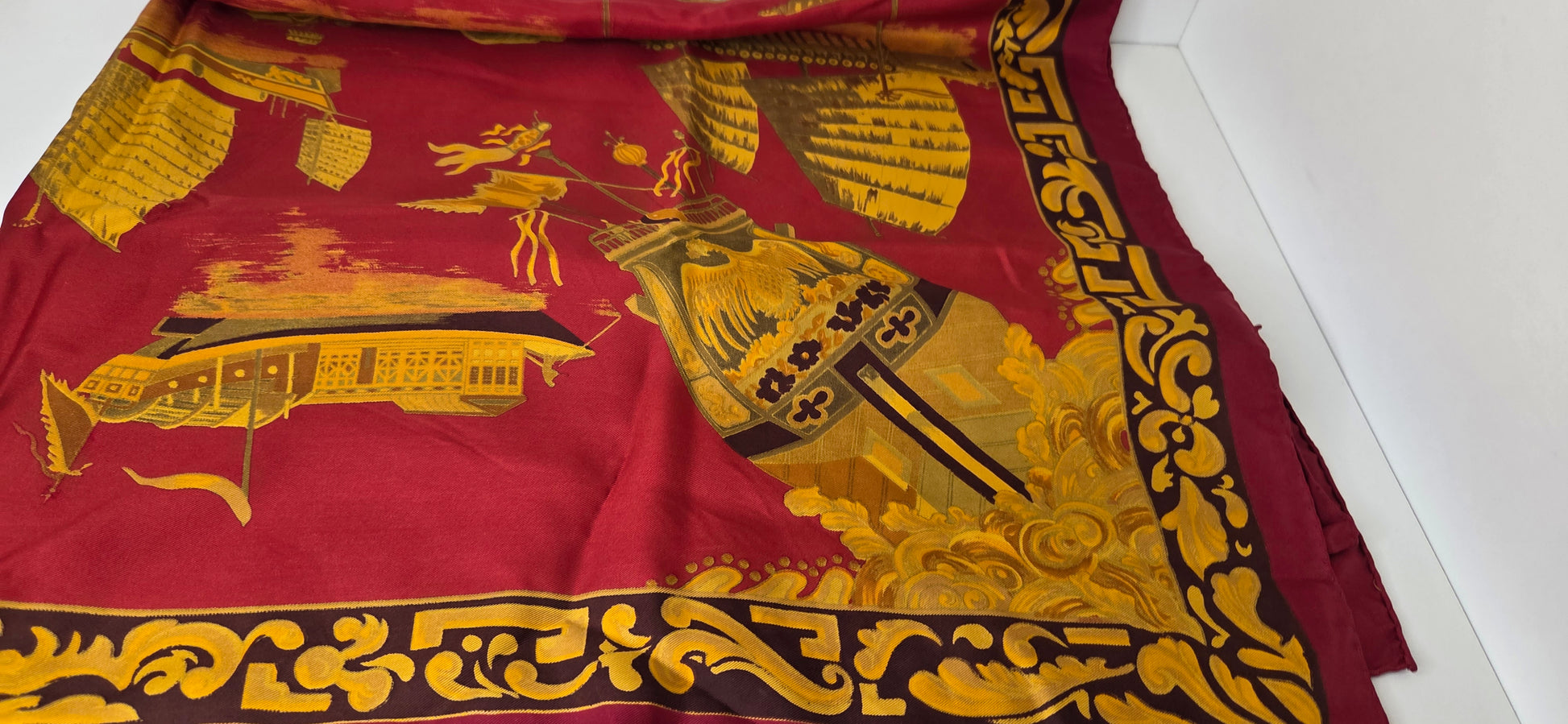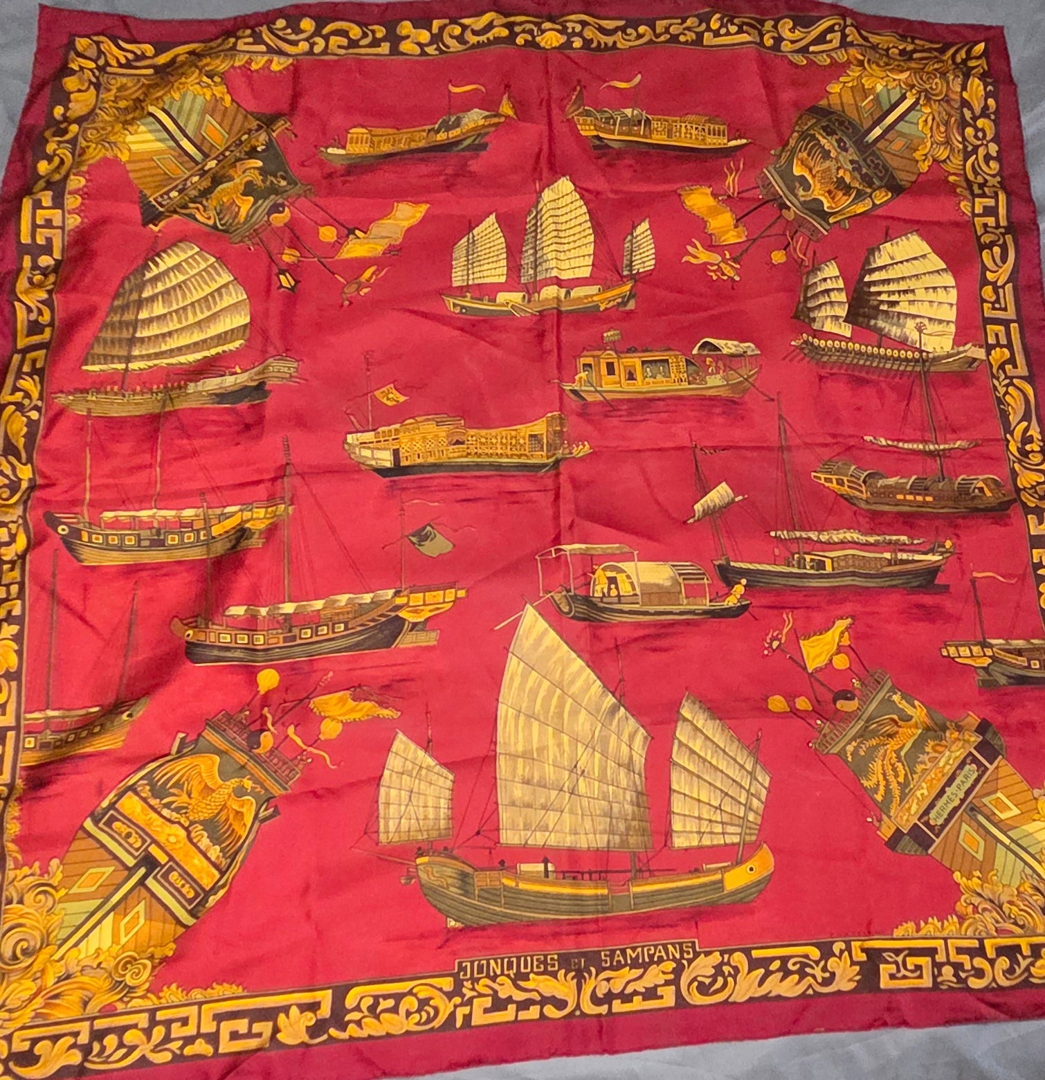 Hermès Paris Carré en twill de soie Intitulé " Jonques et Sampans"