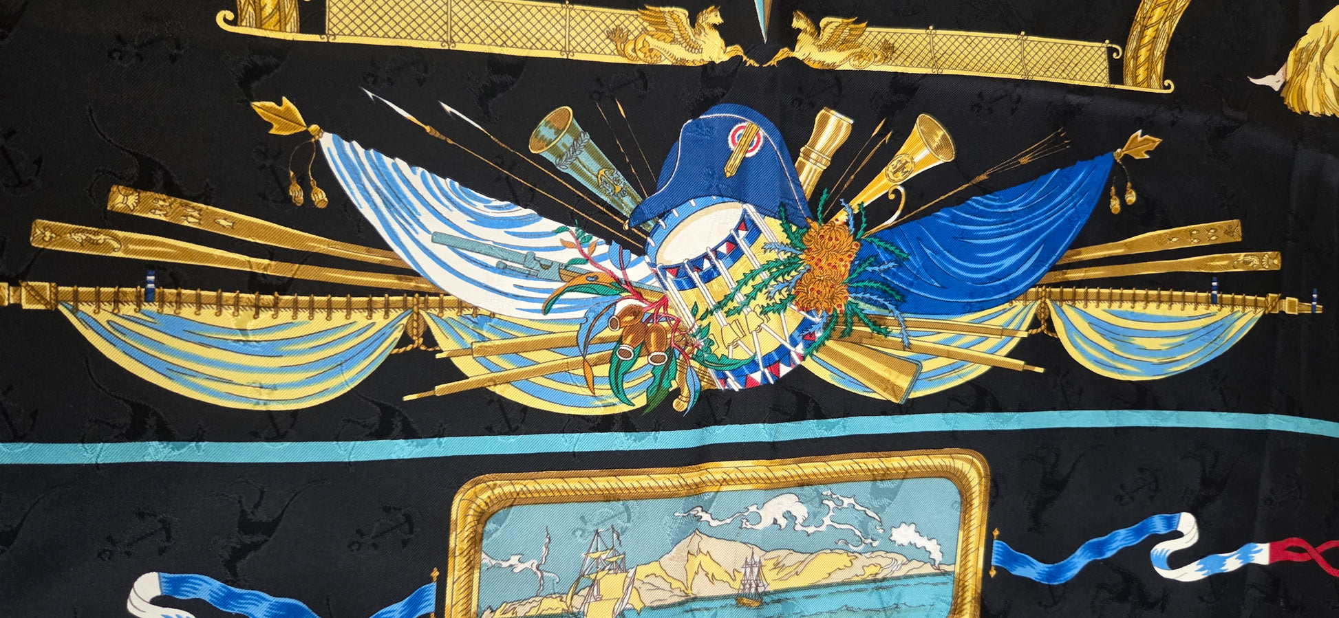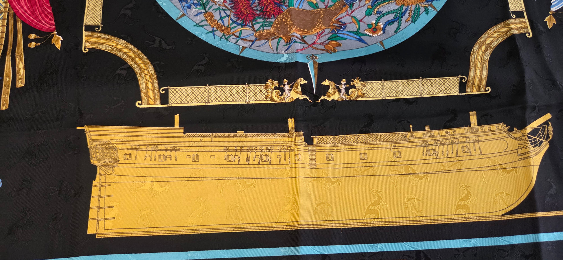 Particularité: soie brochée d'ancres et de kangourous