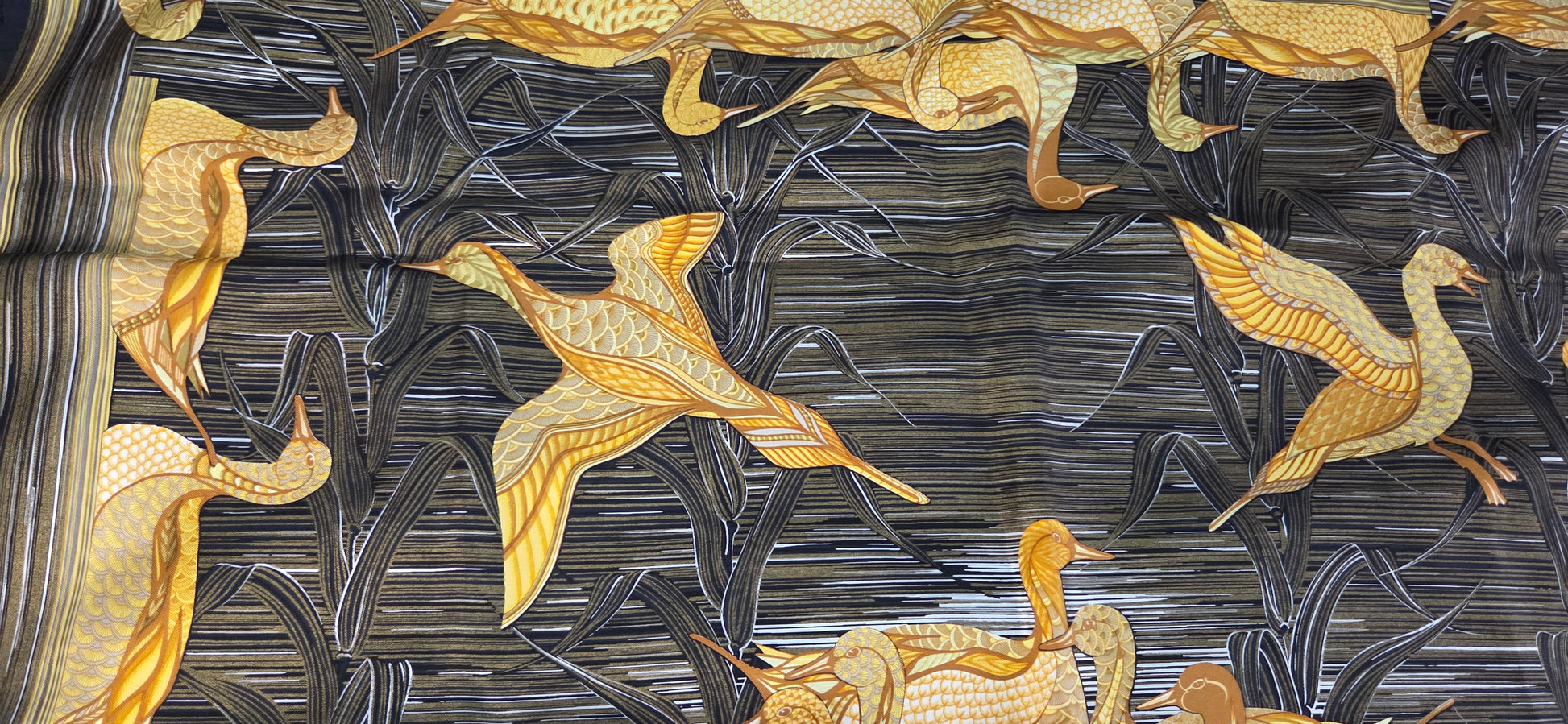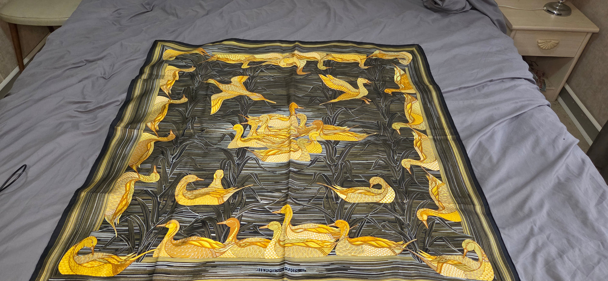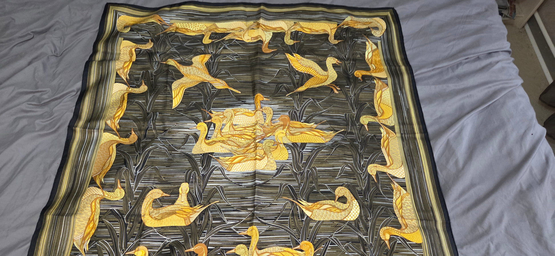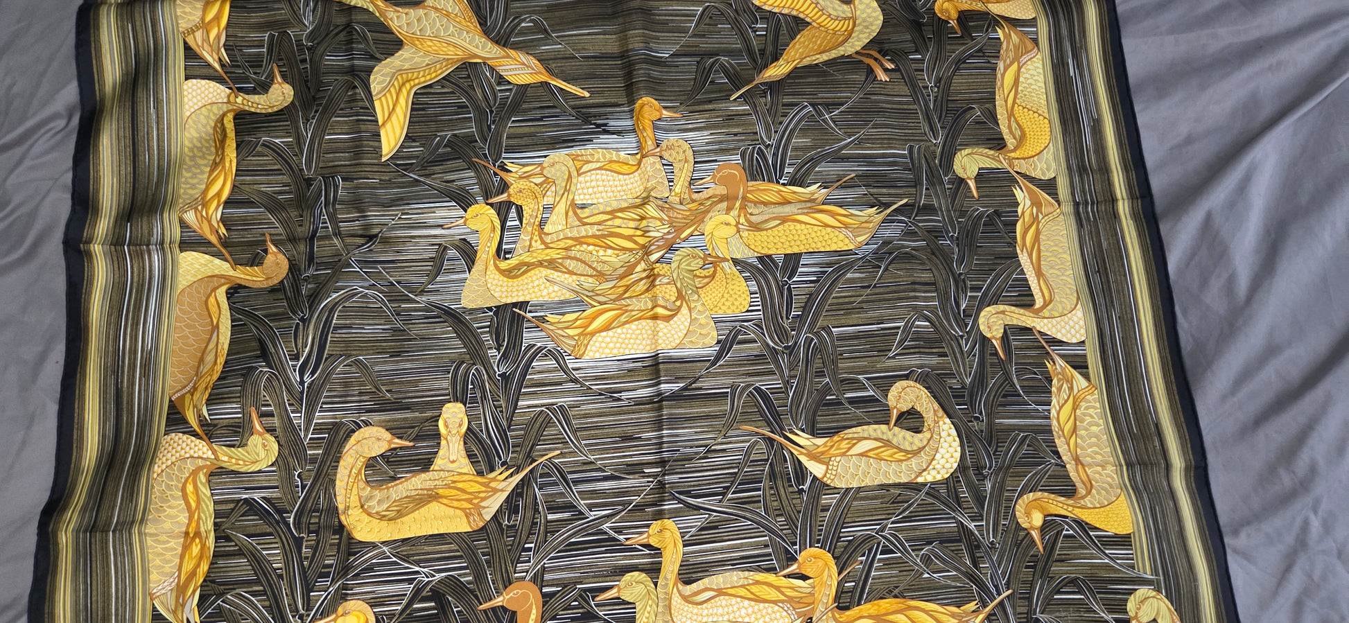 Hermès Paris Carré en twill de soie intitulé "Mare aux Canards ".