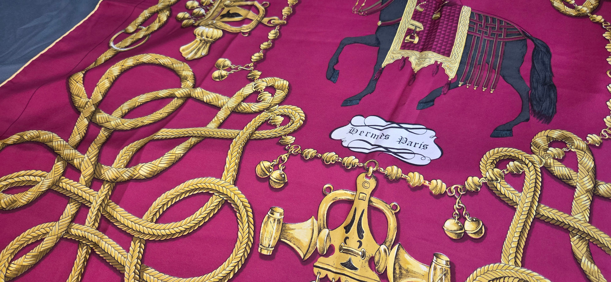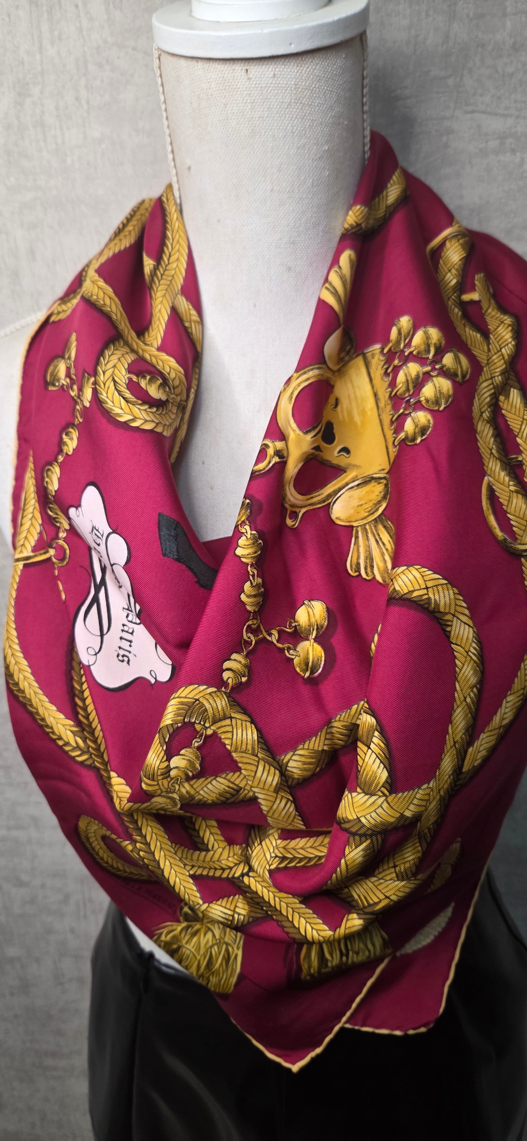Signée Francoise De la Perriere sur fond rouge et roulotte jaune.
