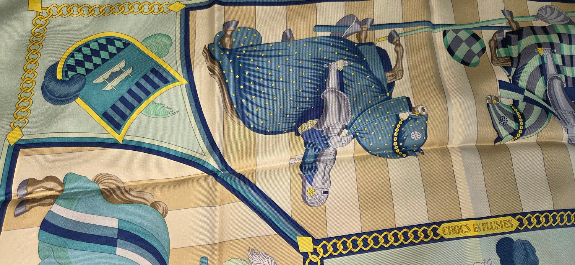 Carré Hermès intitulé Chocs en Plumes