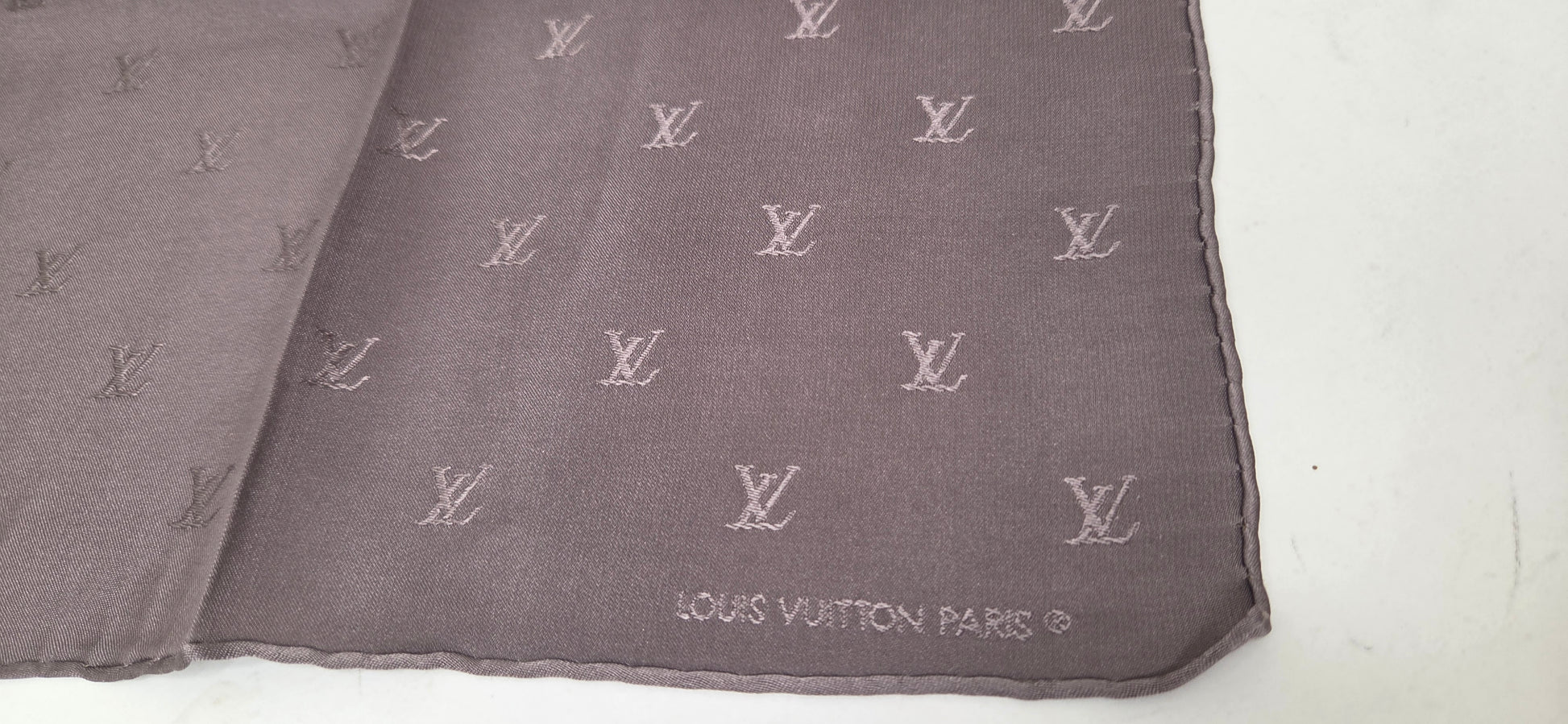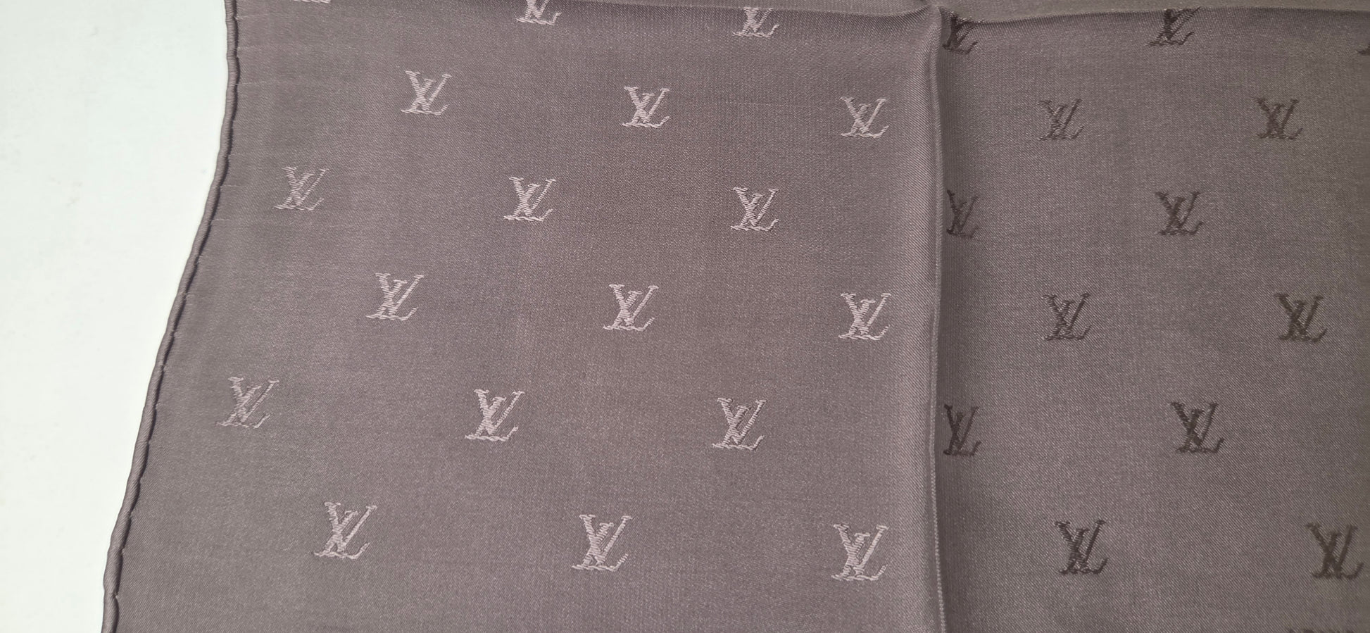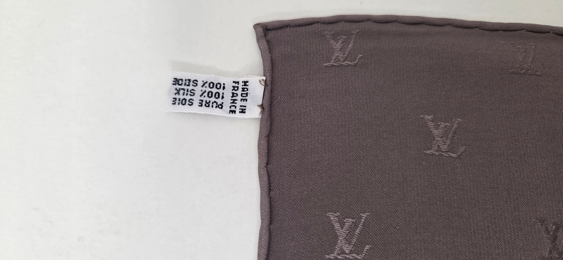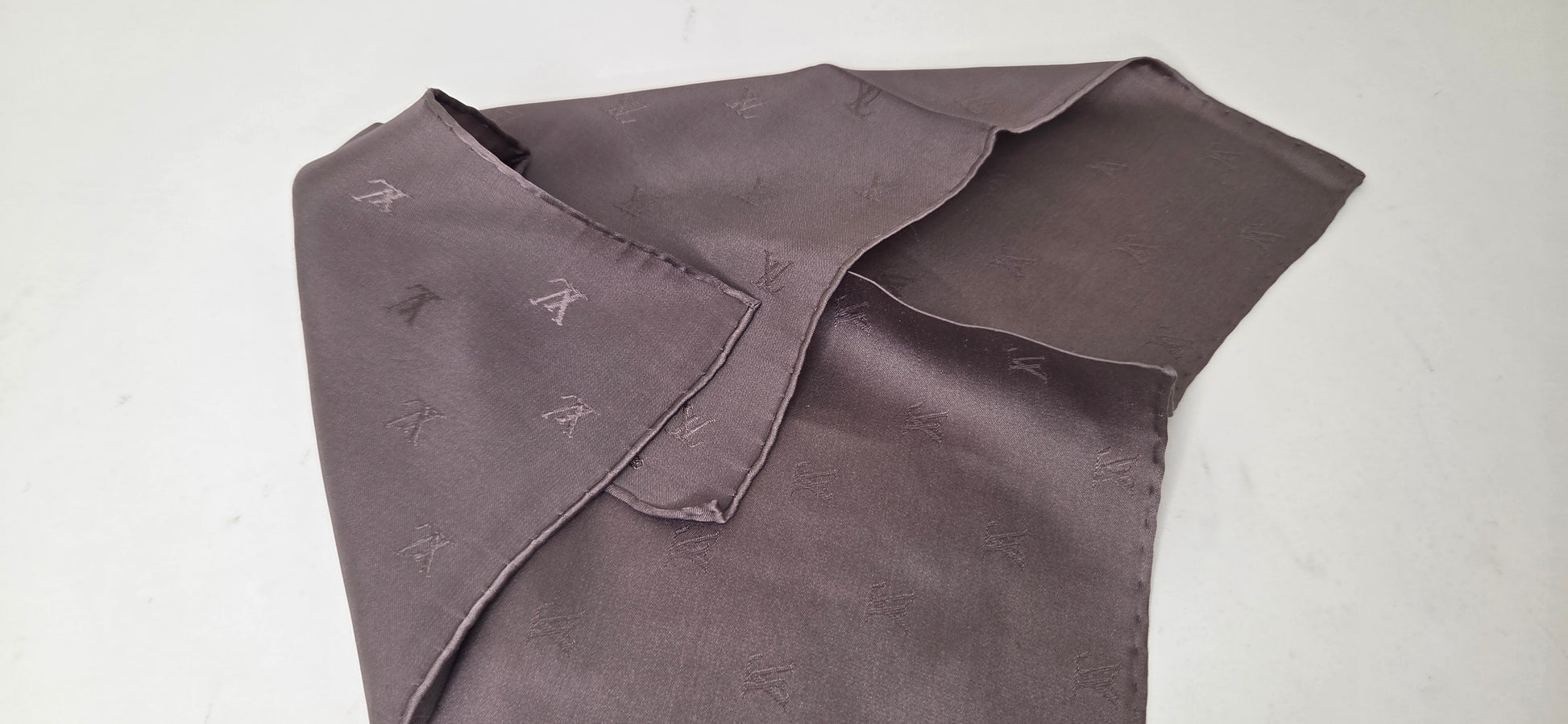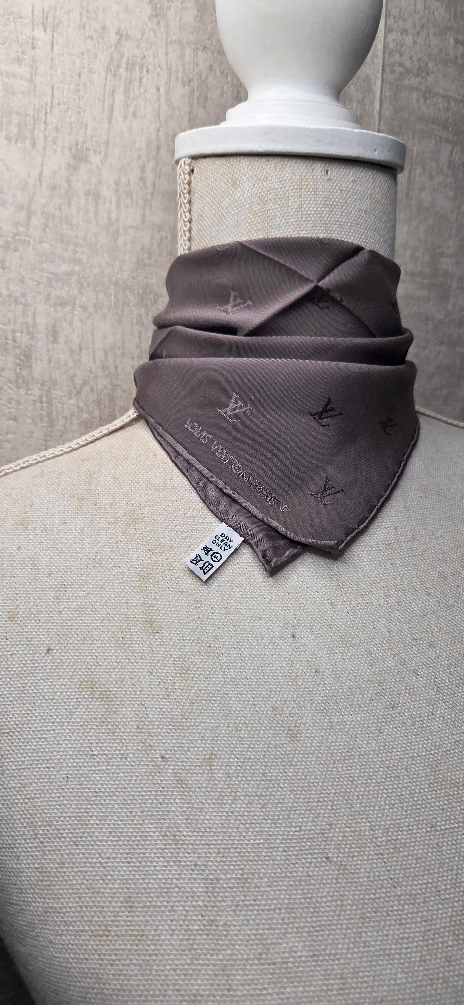 Louis Vuitton- Gavroche en soie Façonnée Gris marron.