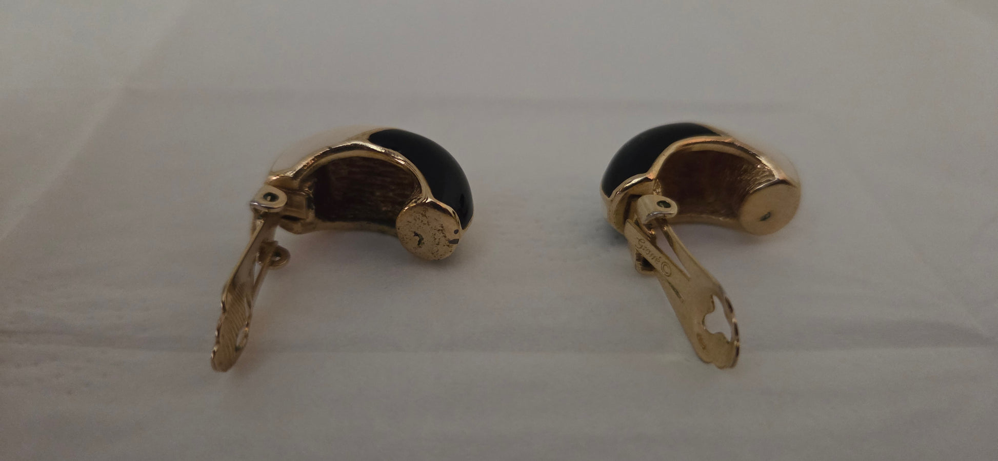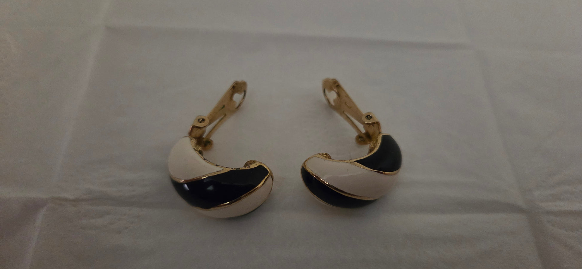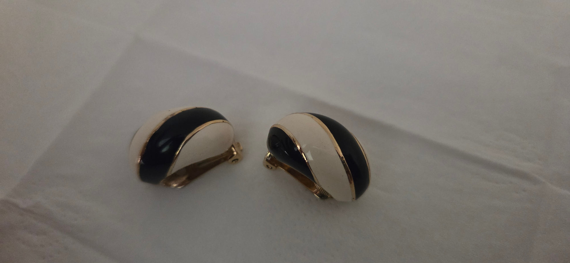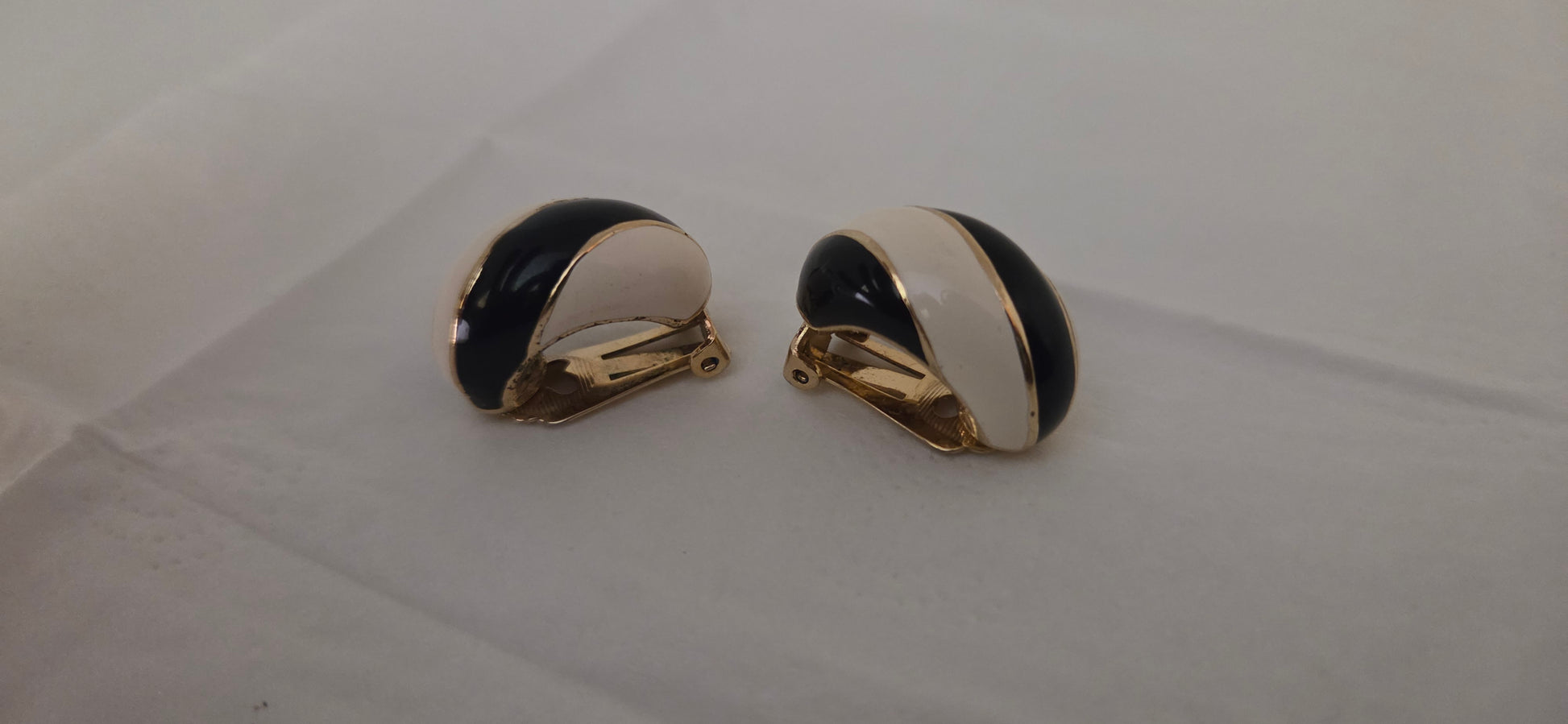 Boucles D'oreilles Clips Grosse Circa 1960 émaillées Ivoire et Noire ( Signé)