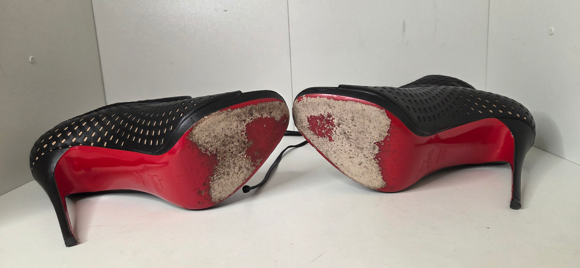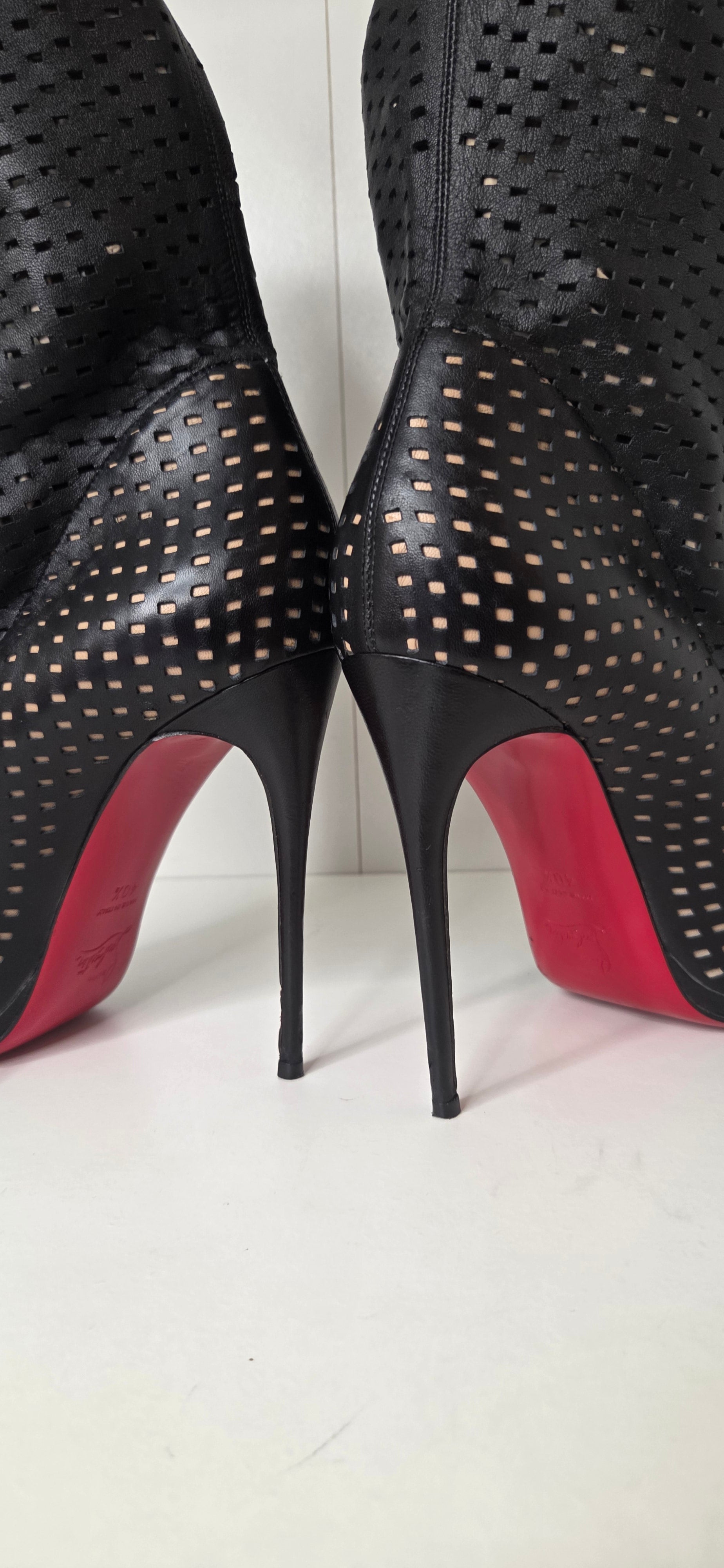 Louboutins Jennifer 120 Black Perforated Booties Open toe size 40 1/2
