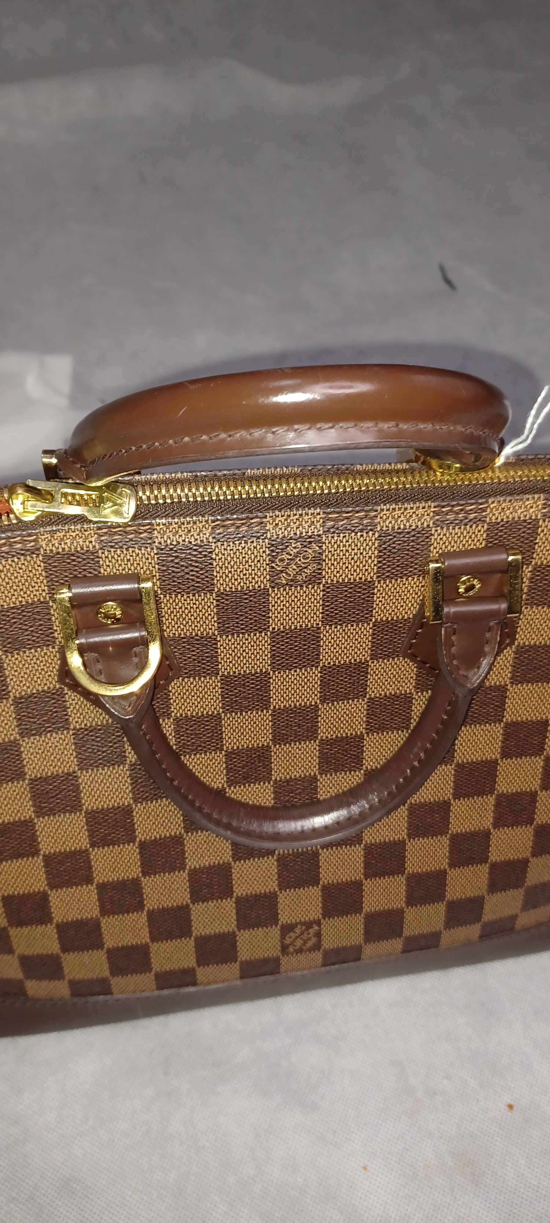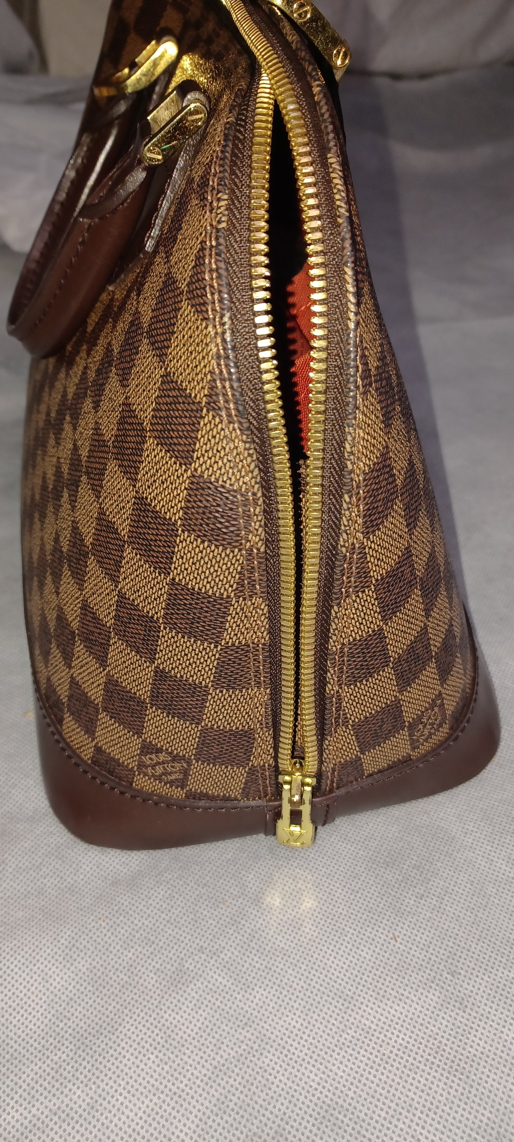 Sac Louis Vuitton Alma PM en cuir Damier Ébène, agréments metal doré