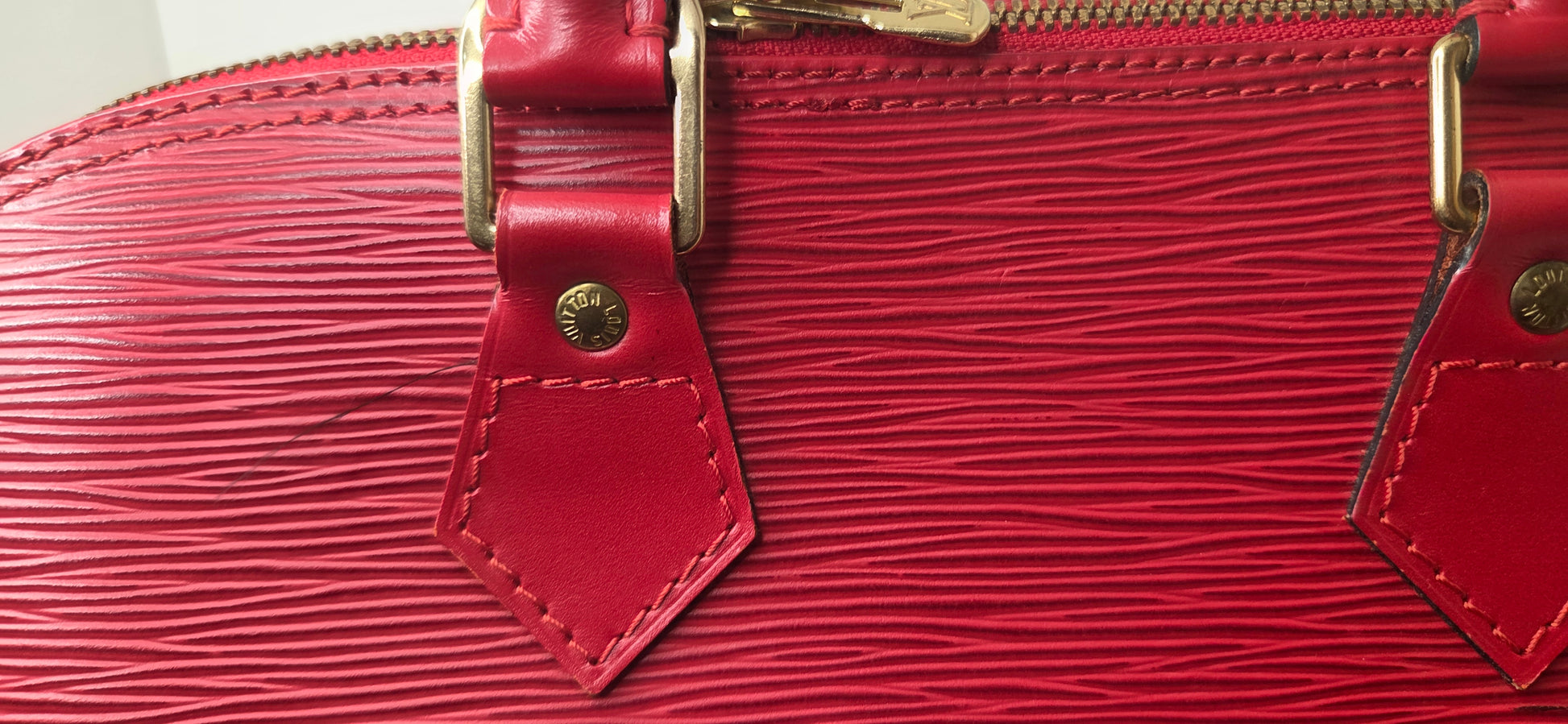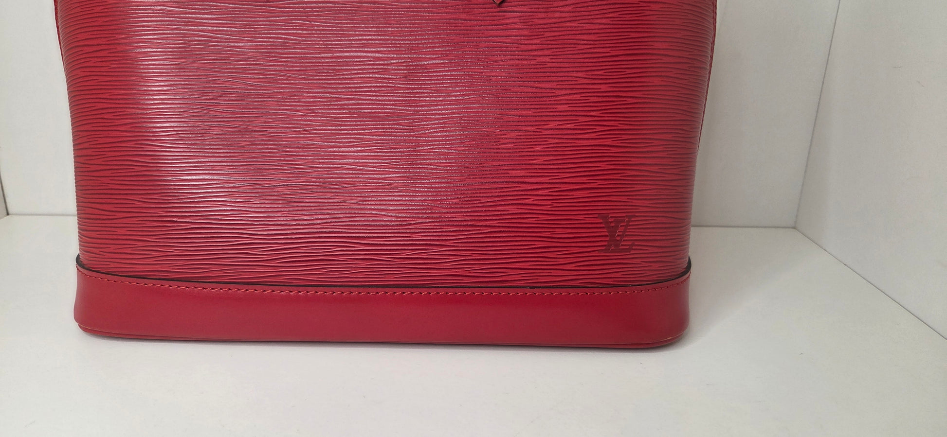 Louis Vuitton SAC à main "Alma" en cuir de veau Épi Rouge. En Excellent état pour son Âge.
