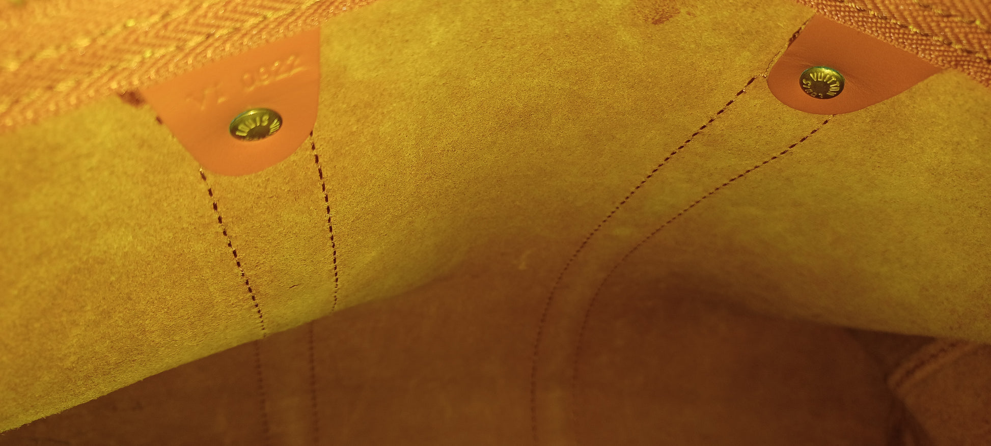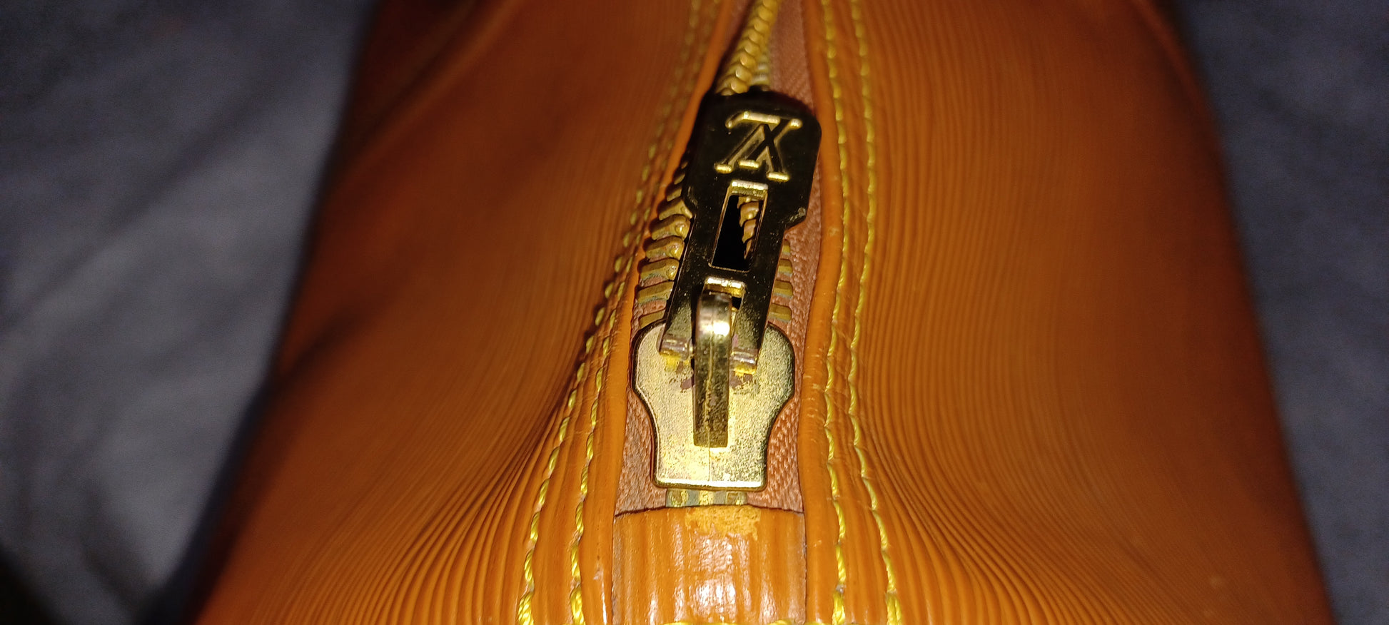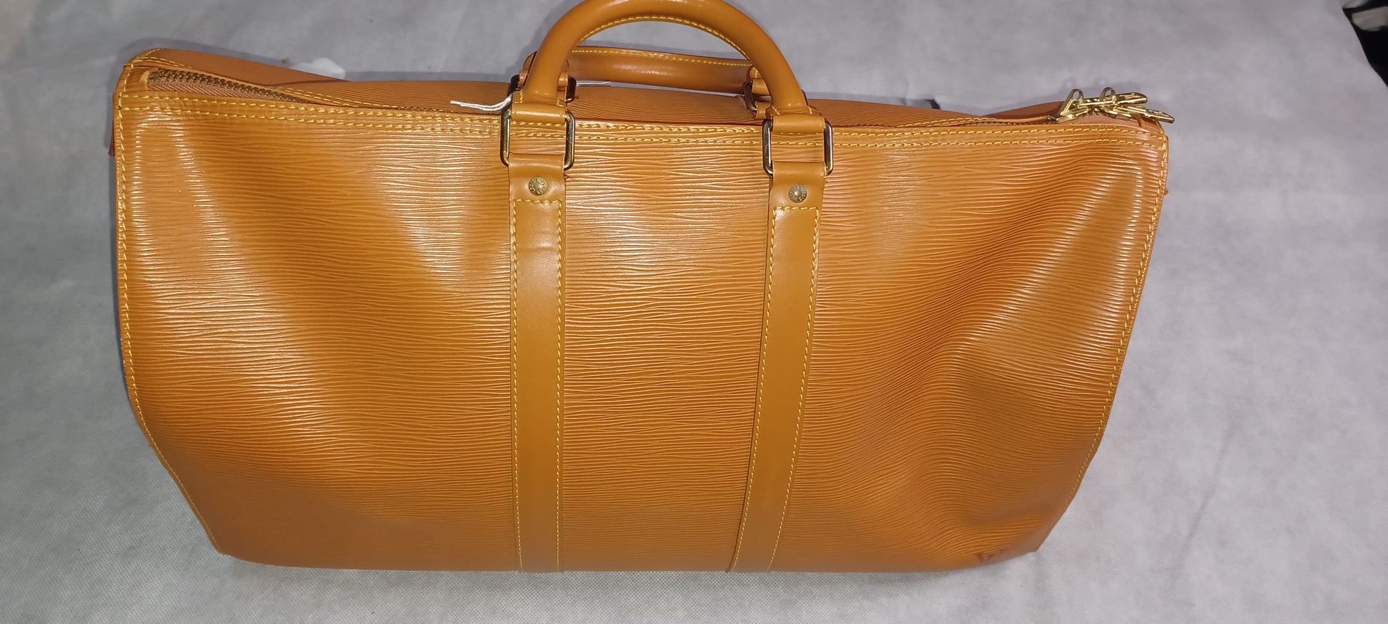 Louis Vuitton SAC de Voyage Keepall en cuir épi Gold agréments en metal doré.