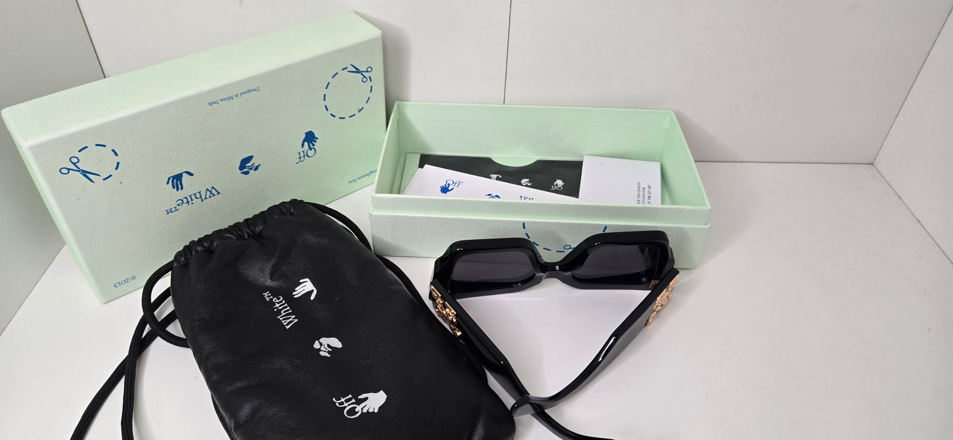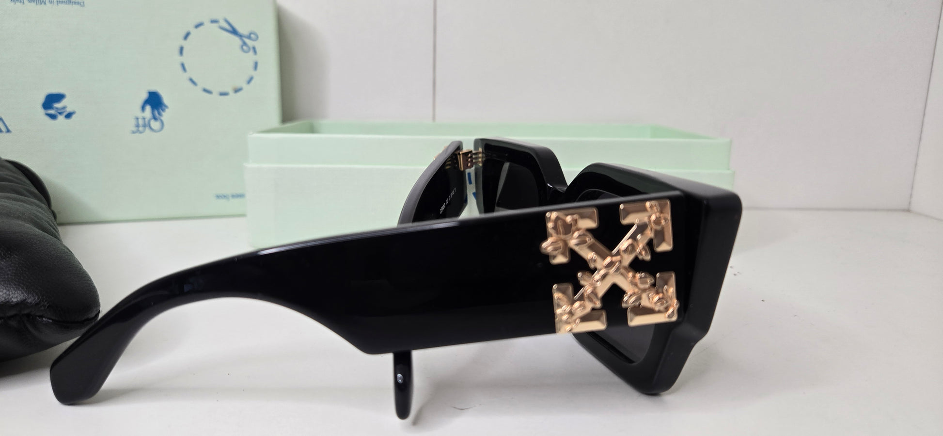 Lunettes de Soleil Off White "Catalina" noir foncé avec des dorures sur le Logo.