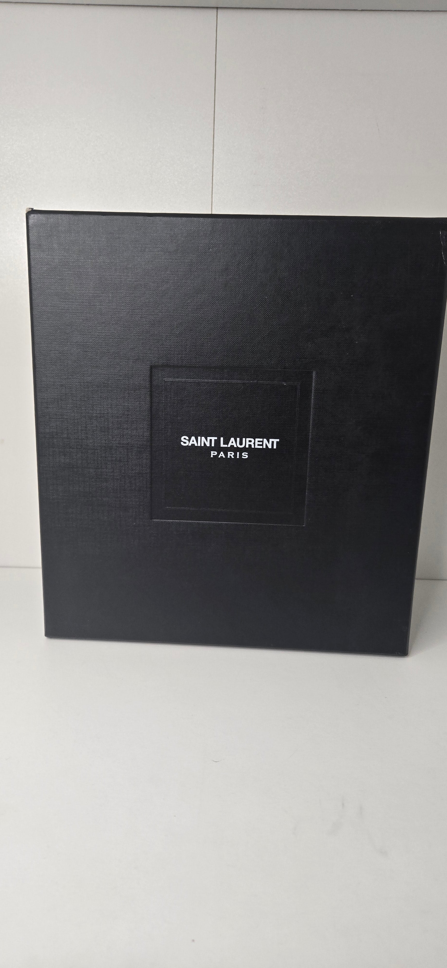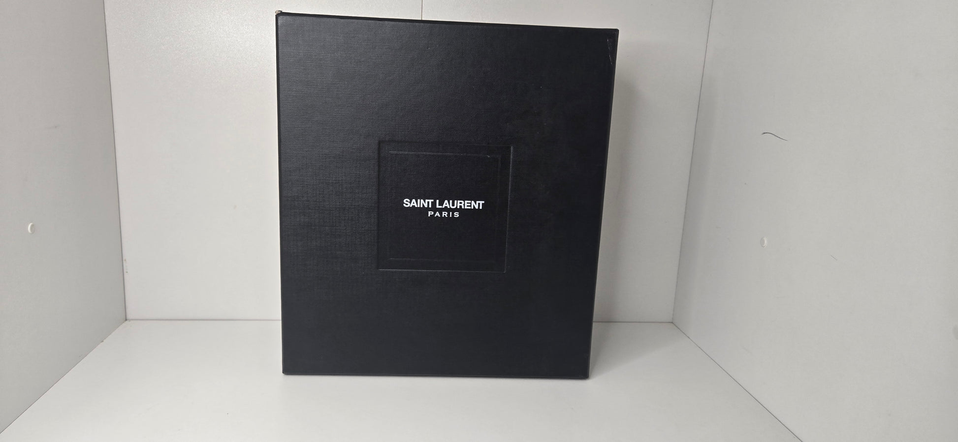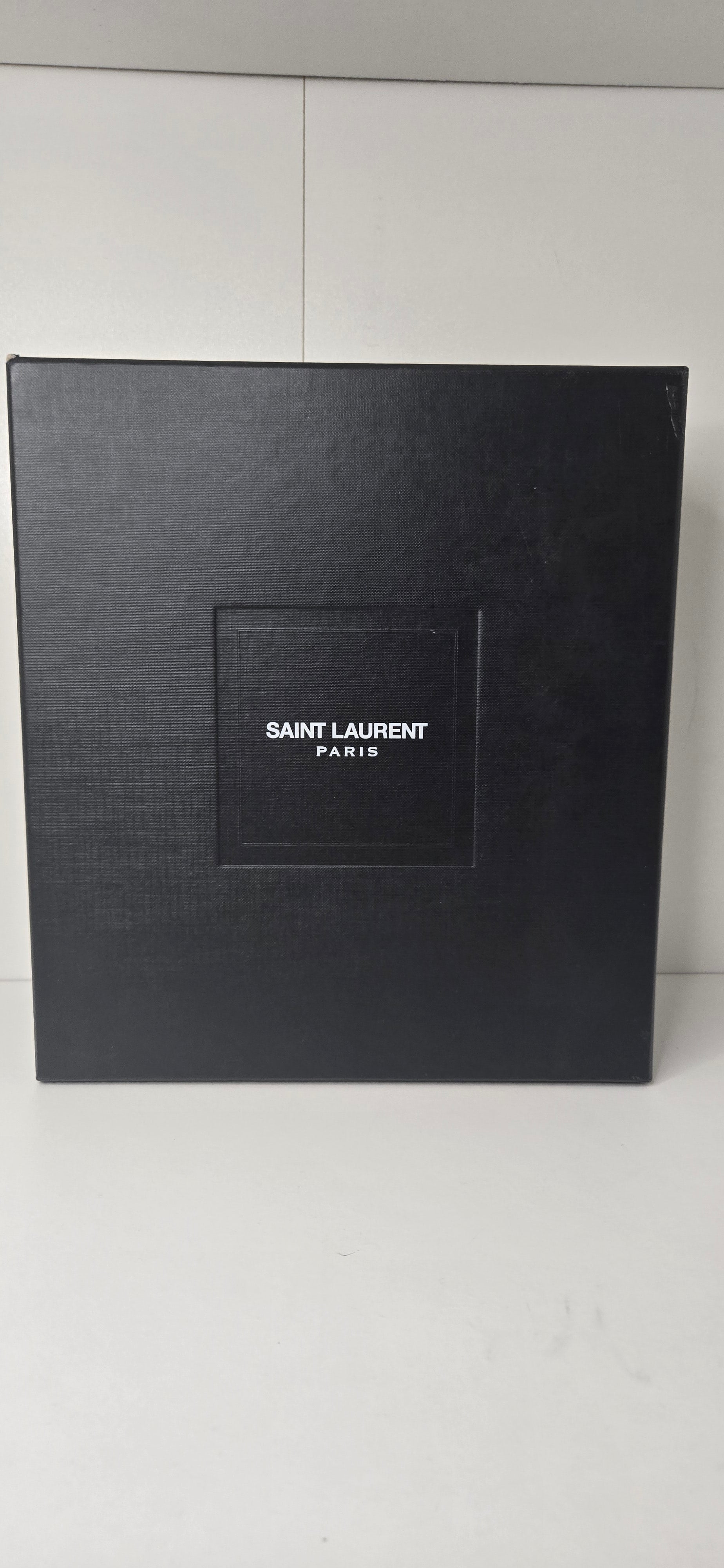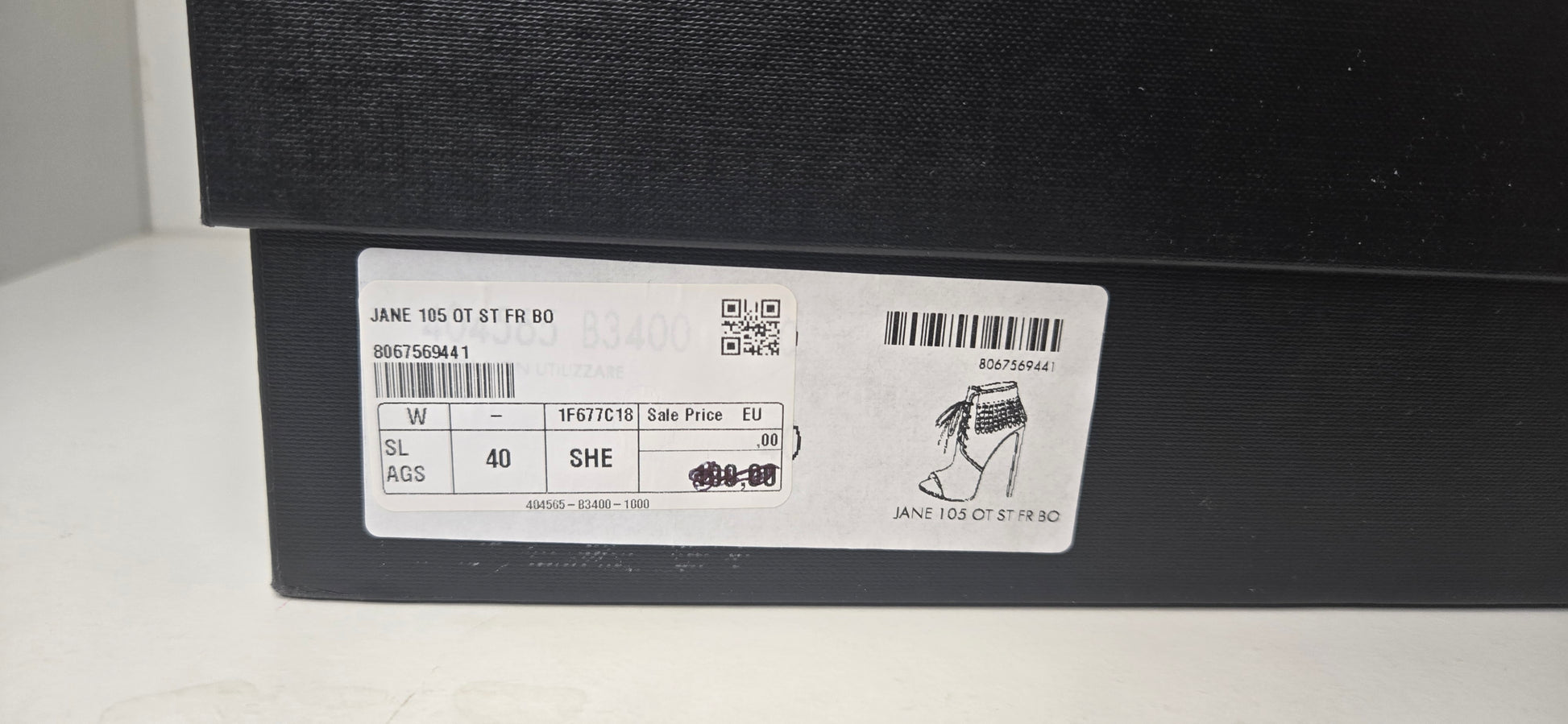 Saint Laurent Paire de Boots "Jane" a bouts ouverts en cuir noir, franges cloutées (Pointure 40). Dust bag , boîte, etc..